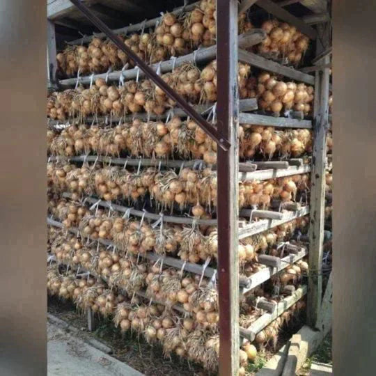 中生品種で今でも昔ながらの玉ねぎ小屋での自然乾燥をしているのと、特殊肥料を使用することにより通常よりも日持ちが良いです。上手く保存すれば数ヶ月間保存が出来ます。