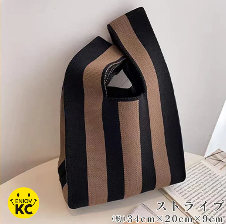 【商品内容】:ニットマルシェバッグ @ストライプ