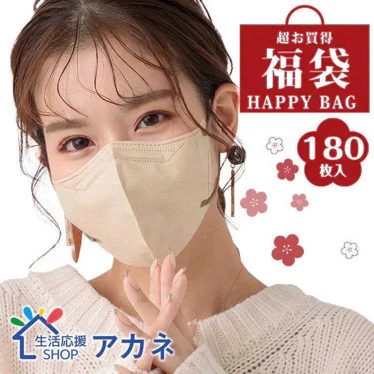 マスク180枚 (大人用Mサイズ)小顔マスク バイカラーマスク 花粉症