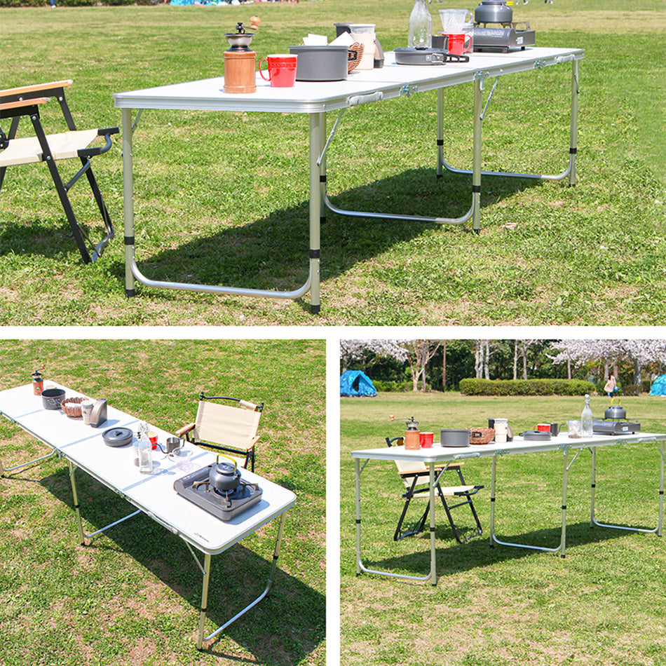 【240㎝×60㎝】【ベージュ】アウトドア テーブル キャンプ バーベキュー テーブル アウトドア 折りたたみ テーブル レジャーテーブル 折り畳みテーブル 240cm 軽量 アルミ 高さ調節 ピクニックテーブル 運動会 お花見 BBQ キャンプ MERMONT