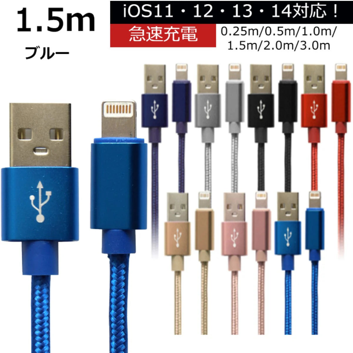 【1.5m】【ブルー】iPhone 充電 ケーブル 断線しにくい 急速充電 2m 1.5m 1m 50cm 25cm データ 充電器 Lightningケーブル ライトニングケーブル スマホ アイフォン usb iPad iPhone 13 12 SE3 SE2 11 XS MAX X XR Pro Max mini【カウシェファーム収穫対象商品】