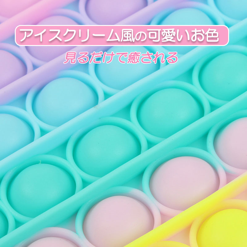 バブルをポコポコ押して、ストレス解消できます。男の子も女の子も喜ぶカラフルでデザイン。