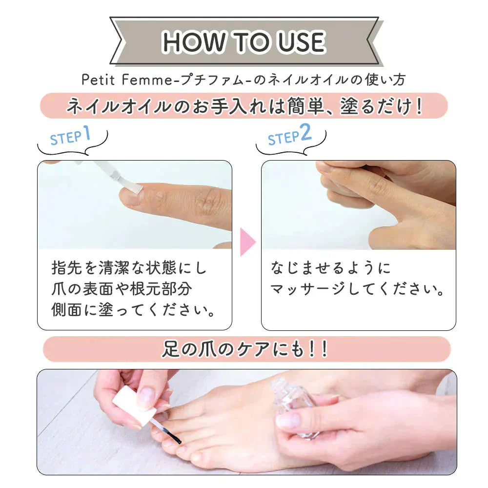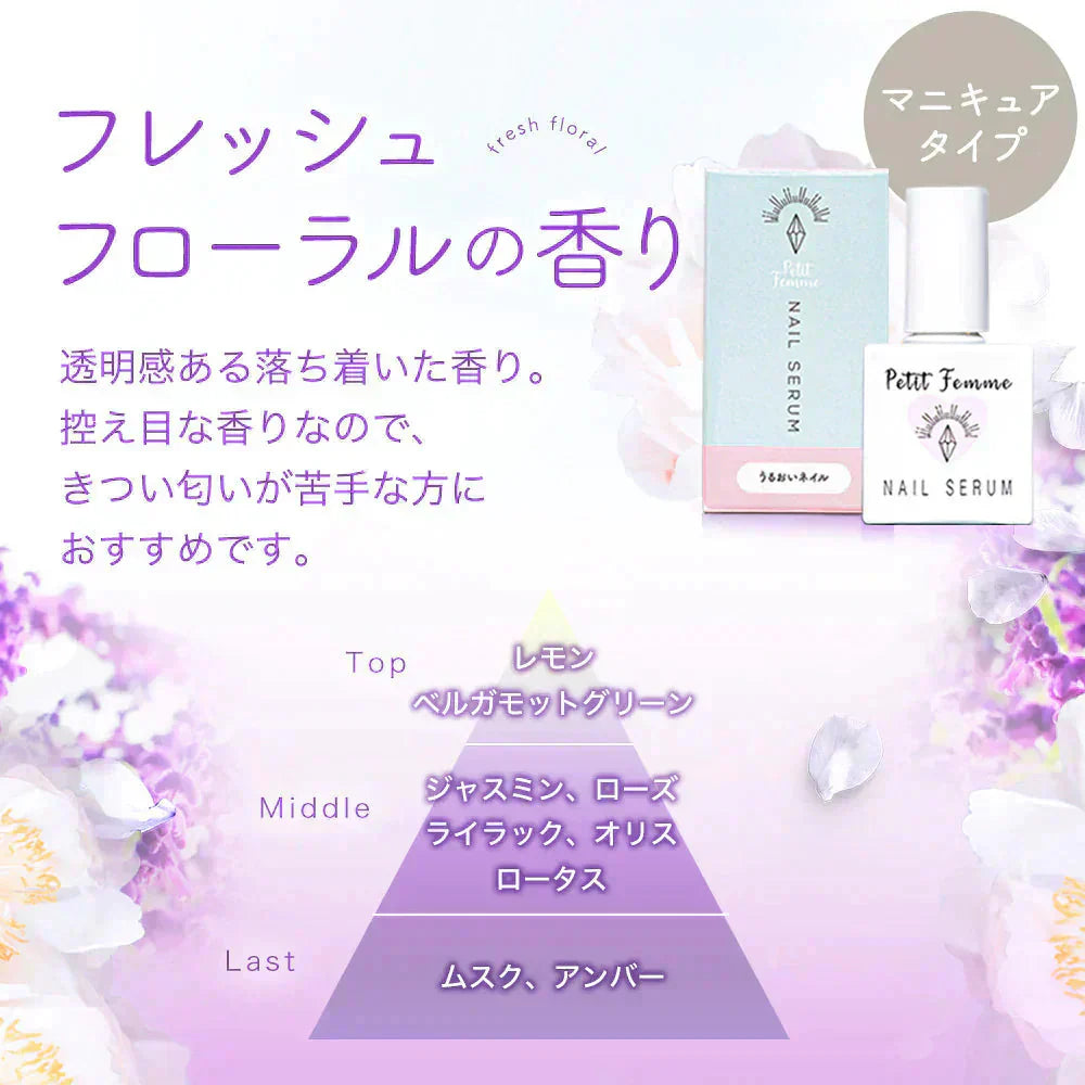 ネイルオイル petit femme プチファム フレッシュフローラルの香り シアバター 10ml 爪 指 ささくれ 二枚爪 美容液 ネイル オイル ケア キューティクルオイル ネイルケア 補強 補修 爪育 育爪 甘皮ケアオイル 保護 ささくれ 割れ爪 甘皮 二枚爪 ネイルケアオイル ギフト プチファム 香り ハイポニキウム サボン ムスク