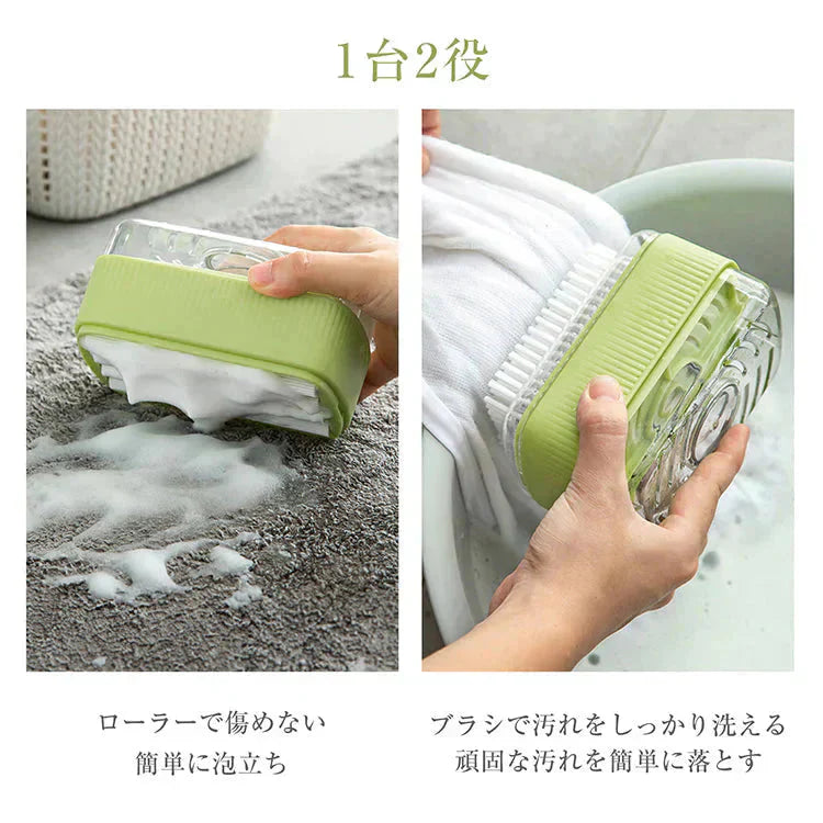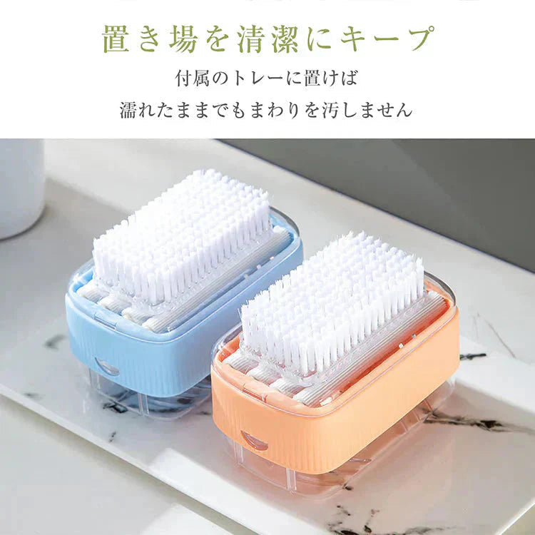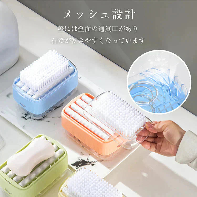 【グリーン】石鹸ケース ブラシ付き 泡立つ SNSで話題 バネ式 ブラシ付石けんケース