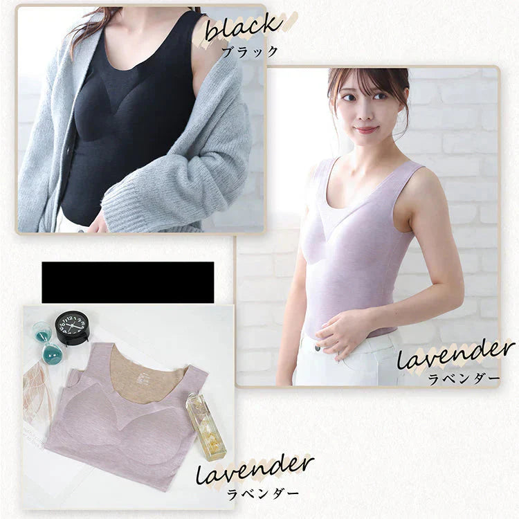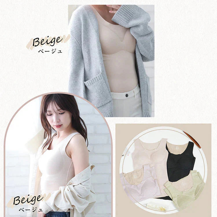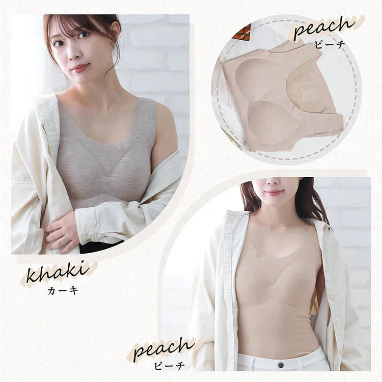 カシミヤシルクタンクトップ 「ベージュXLサイズ」 キャミソール カップ付きタンクトップ ブラ カップ付きキャミソール ブラキャミ 裏起毛 カップ取り外し