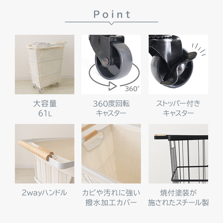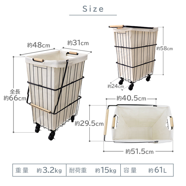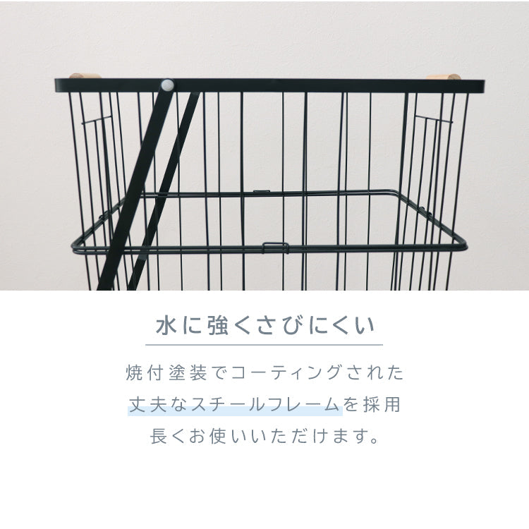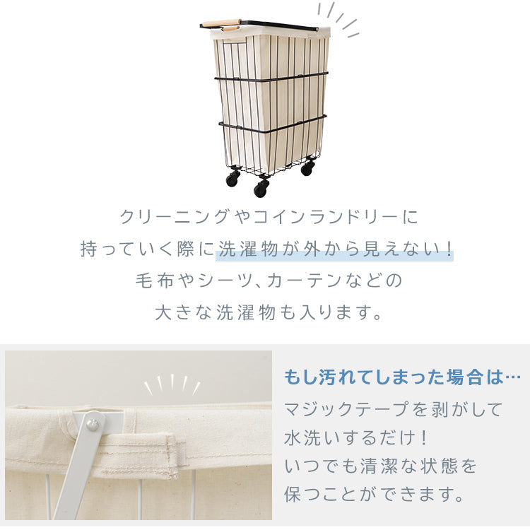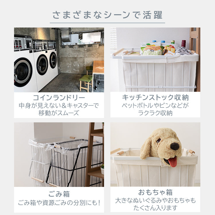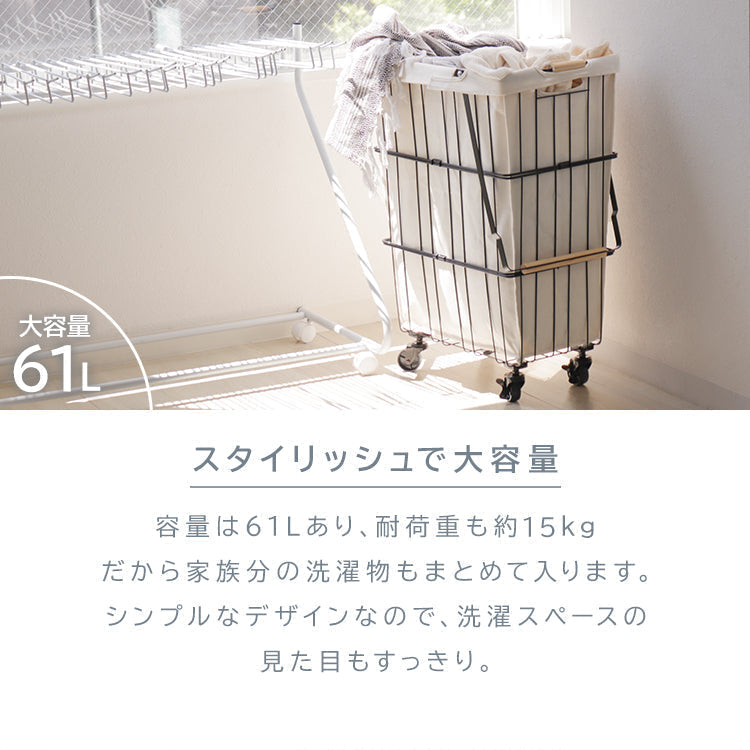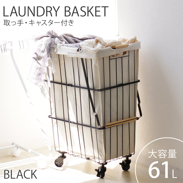 【ブラック】ランドリーバスケット キャスター付き 61L 大容量 ランドリーワゴン 洗濯カゴ 脱衣かご 洗濯かご ワイヤーバスケット 洗濯物 ランドリー 洗濯物入れ かご 脱衣所 洗面所 角型 収納 ランドリー収納 ボックス シンプル おしゃれ 新生活