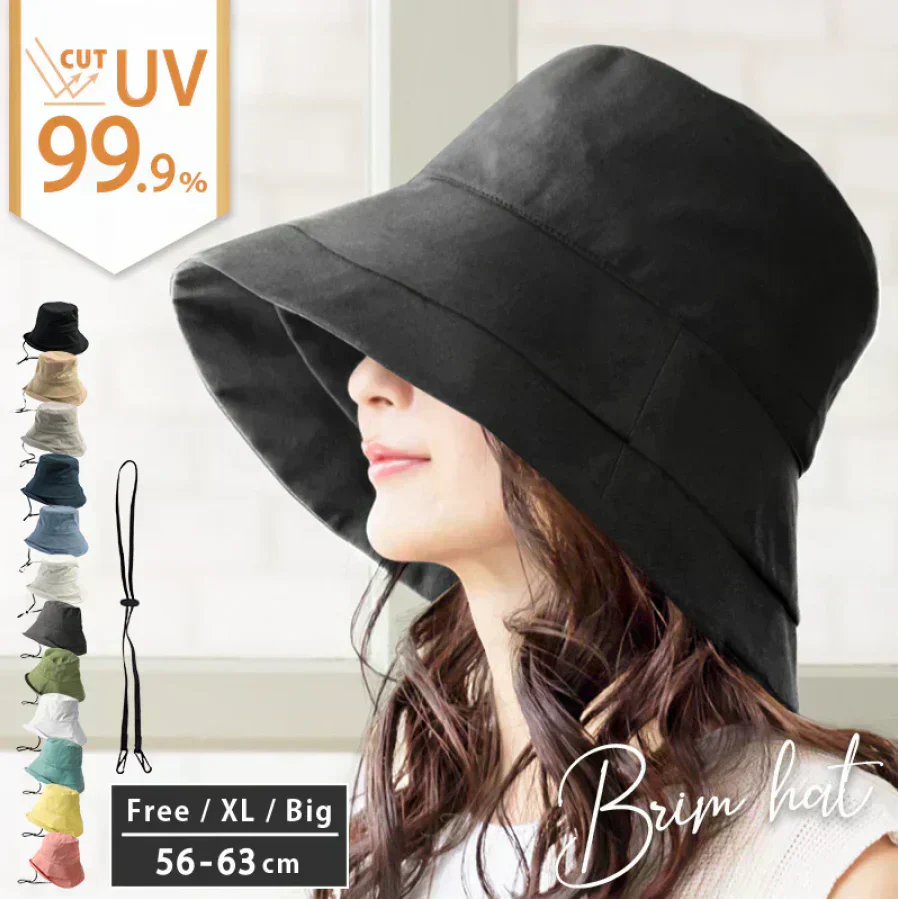 【フリーサイズ56-58.5cm-ブラック】【商品名:紐付き麻ポリブリムハット】