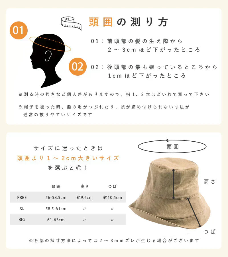 頭周り56-58.5cm 高さ約9.5cm つば10.5cm