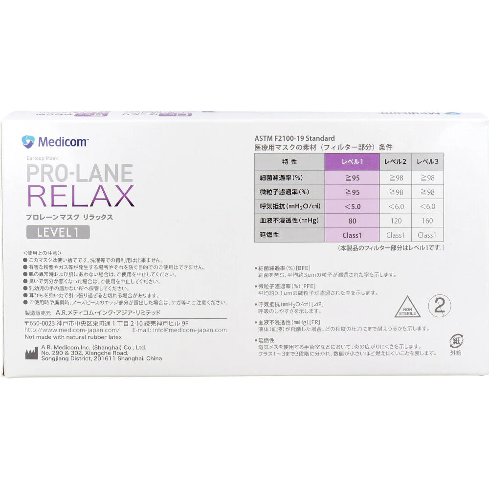 メディコム プロレーンマスク リラックス LEVEL1 ライラック 50枚入り X6箱
