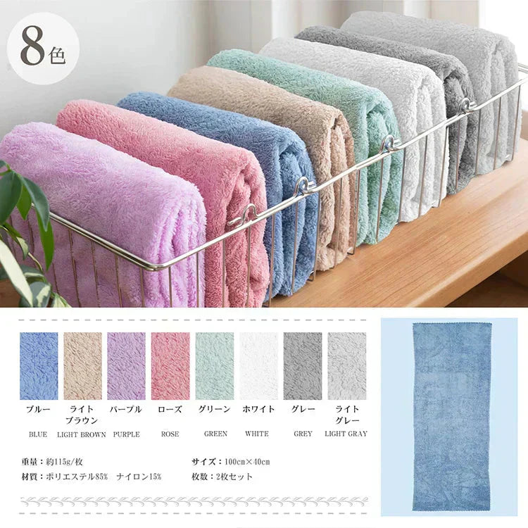 「ヘアドライタオル パープル同色2枚セット100cm×40cm」ヘアタオル ヘアドライ 吸水 キャップ ターバン 吸水速乾 ふわふわ 髪 速乾 フェイスタオル