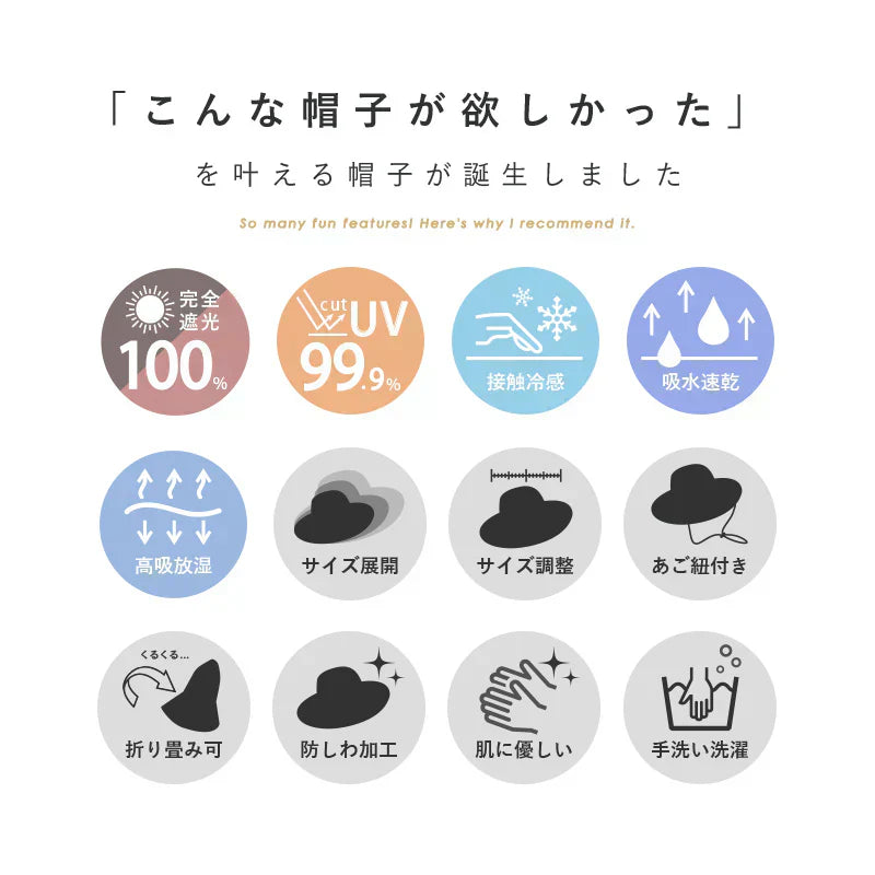 頭周り 56-58.5cm 高さ約9.5cm つば約10.5cm