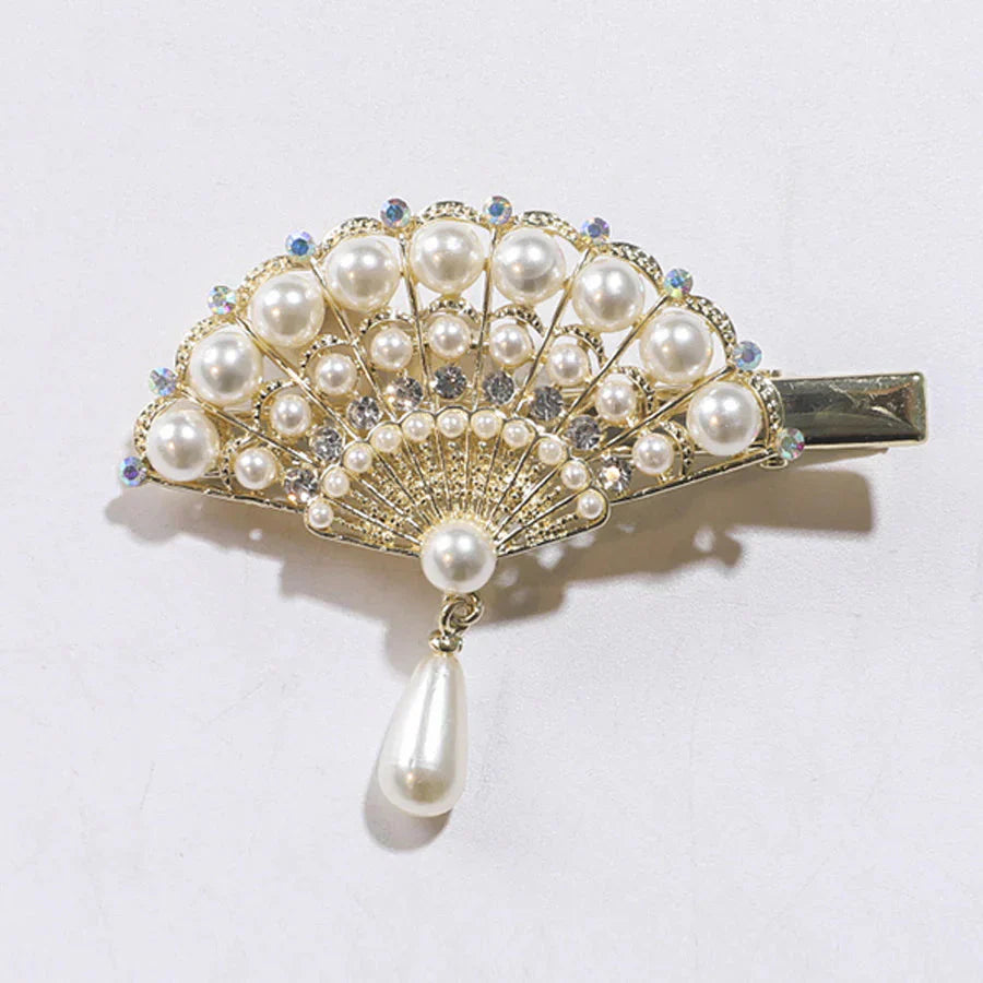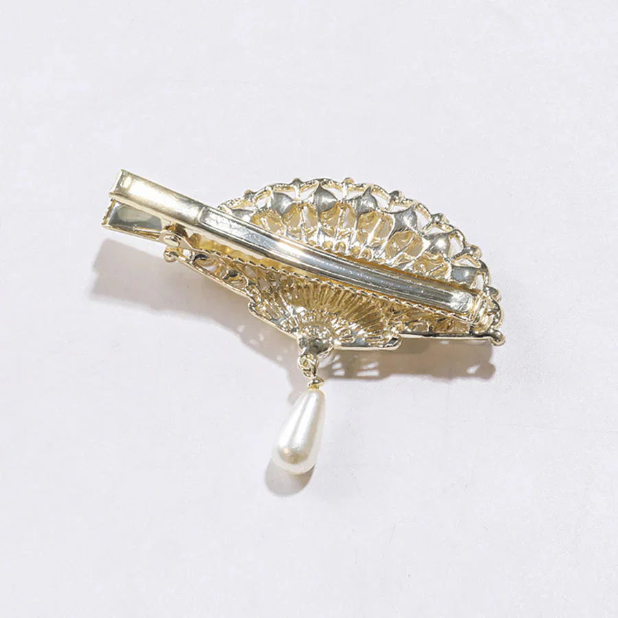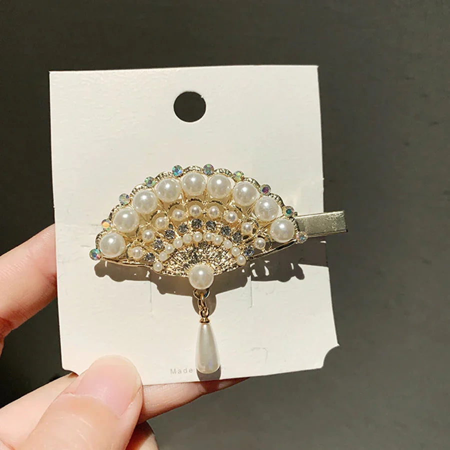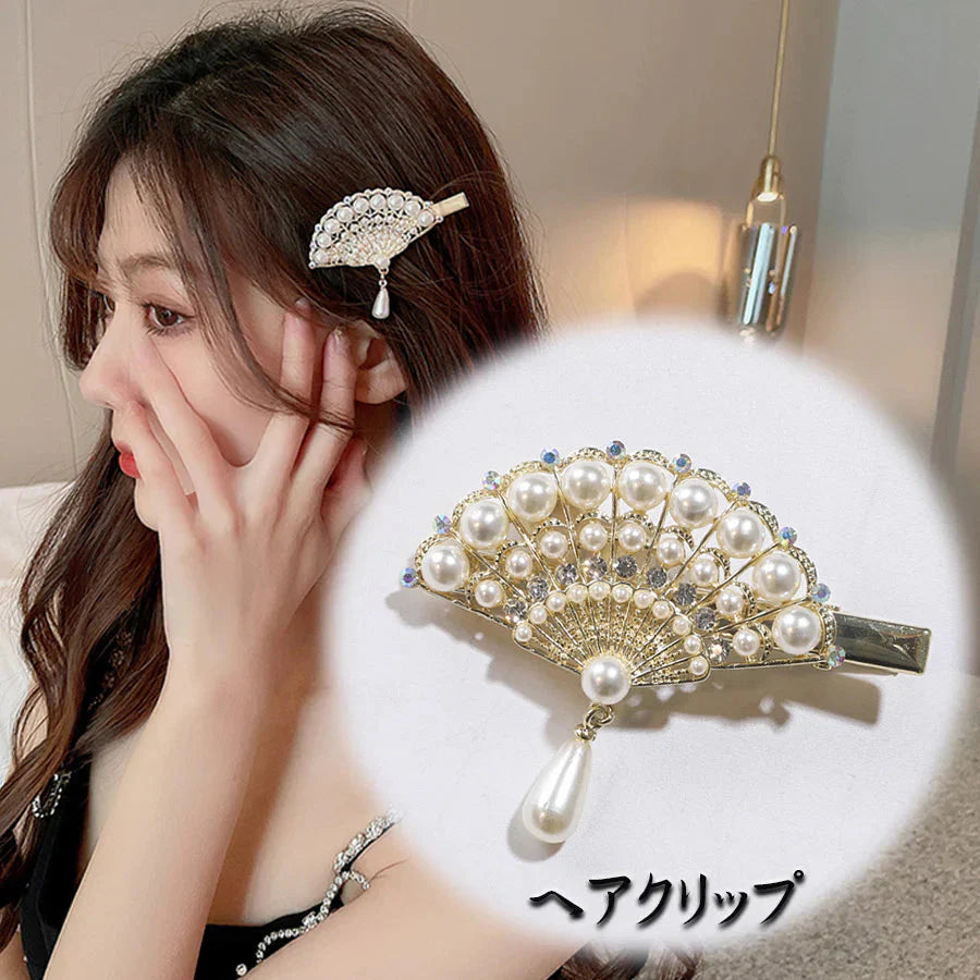 ヘアクリップ 扇子 パール せんす チャーム 浴衣 和装 キラキラヘアピン ヘア留め 髪飾り 髪留め ヘアアクセサリー 前髪 かわいい ゴールド オシャレ 上品 パーティー飾り
