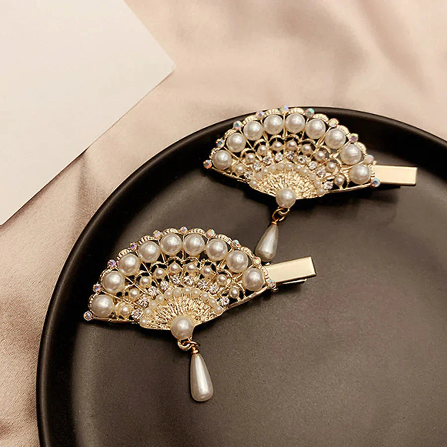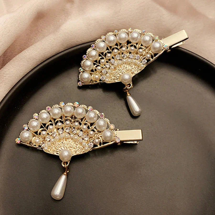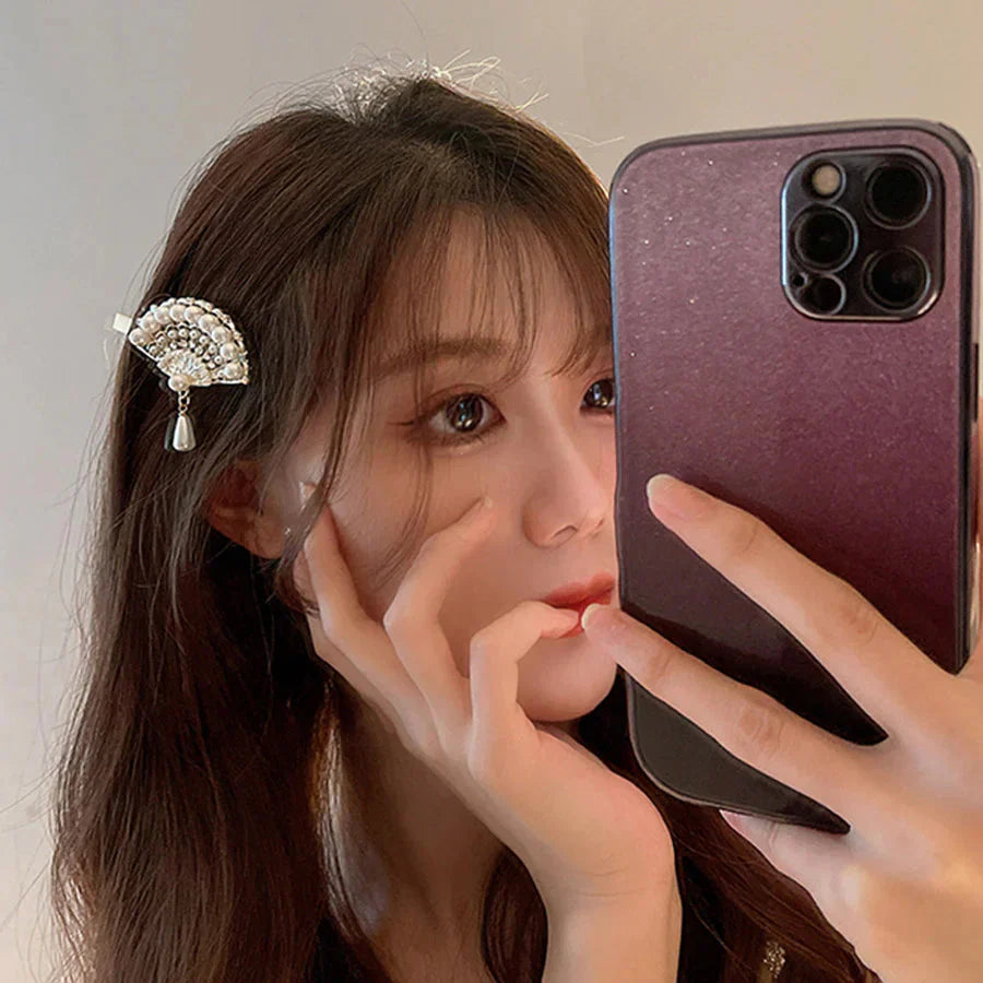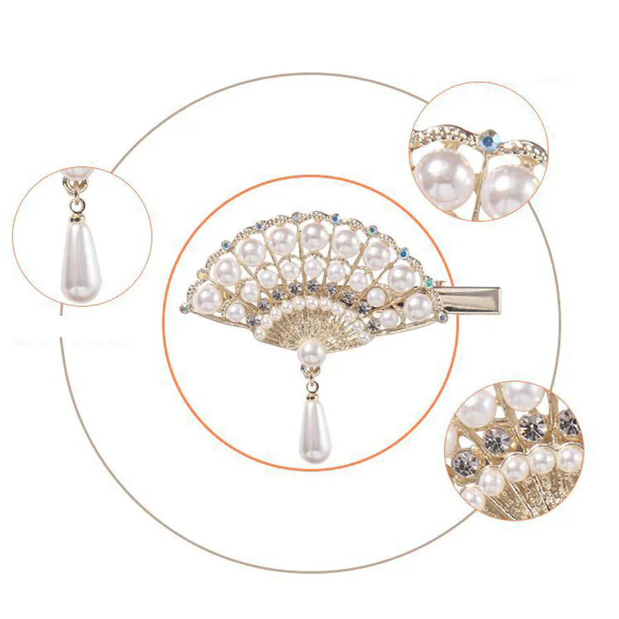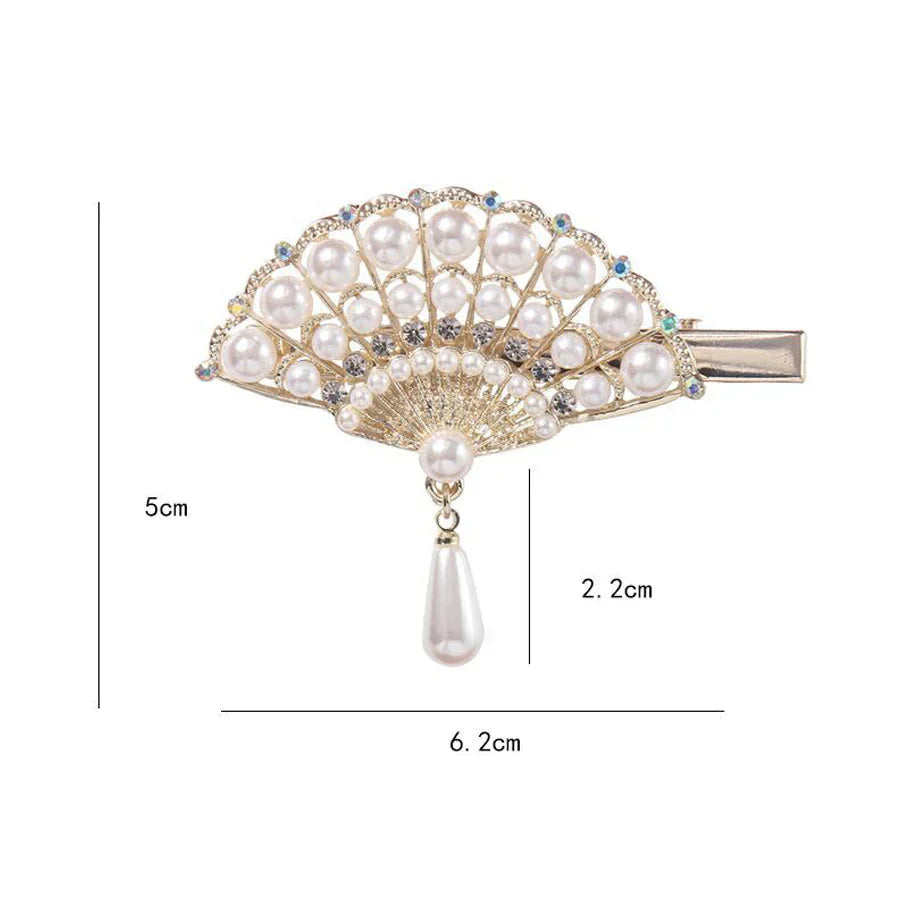 ヘアクリップ 扇子 パール せんす チャーム 浴衣 和装 キラキラヘアピン ヘア留め 髪飾り 髪留め ヘアアクセサリー 前髪 かわいい ゴールド オシャレ 上品 パーティー飾り