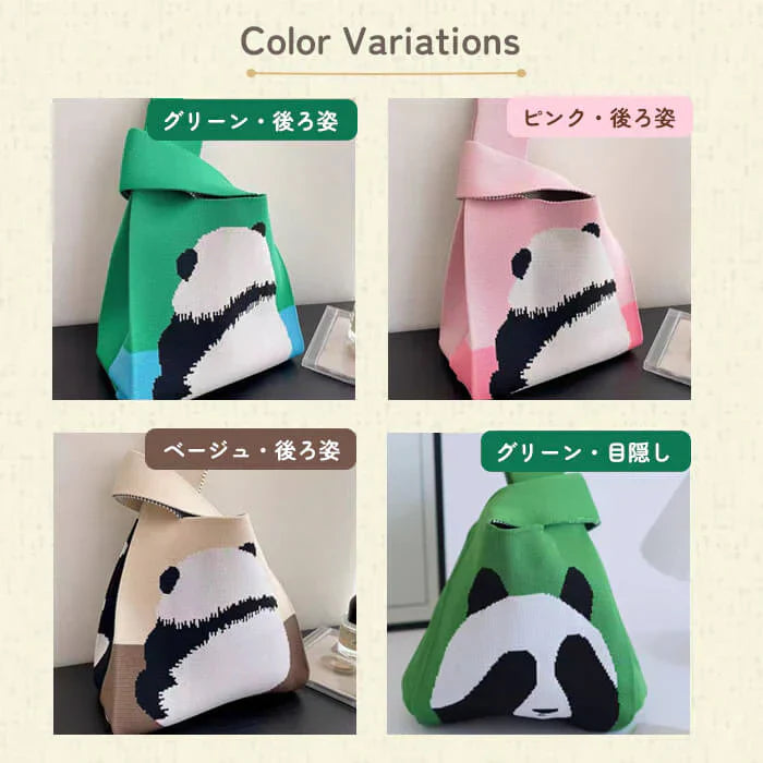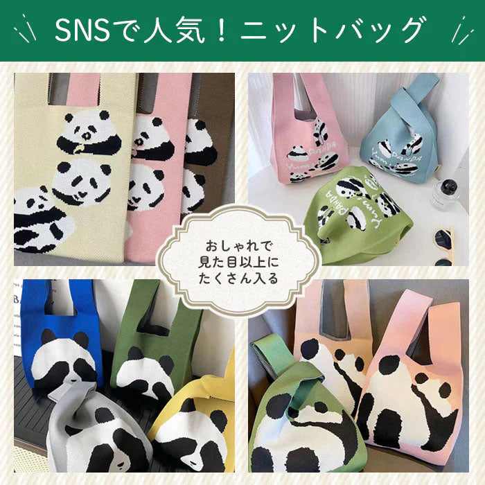 【ベージュ・後ろ姿】【同柄2個セット】【予約商品・発送時期は商品説明に記載】ニット バッグ パンダ ニットバッグ 同柄 2個セット マルシェバッグ ニット トートバッグ 縦型 クロシェ編み かぎ針 ハンドバッグ マルシェ 韓国 ミニバッグ ミニバッグ 送料無料 ギフト プレゼント