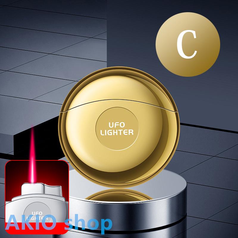 ガス注入式ライター UFOライター 丸形ライター 防風 レッドフレーム 操作簡単 軽量 磁気丸い蓋 ポータブル 高圧技術 ユニークなデザイン ハイキング キャンプ s073C(ゴールド)