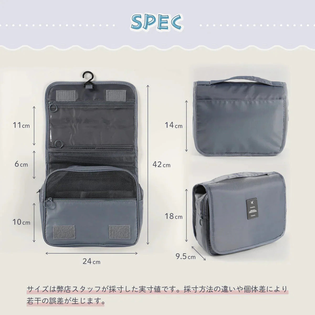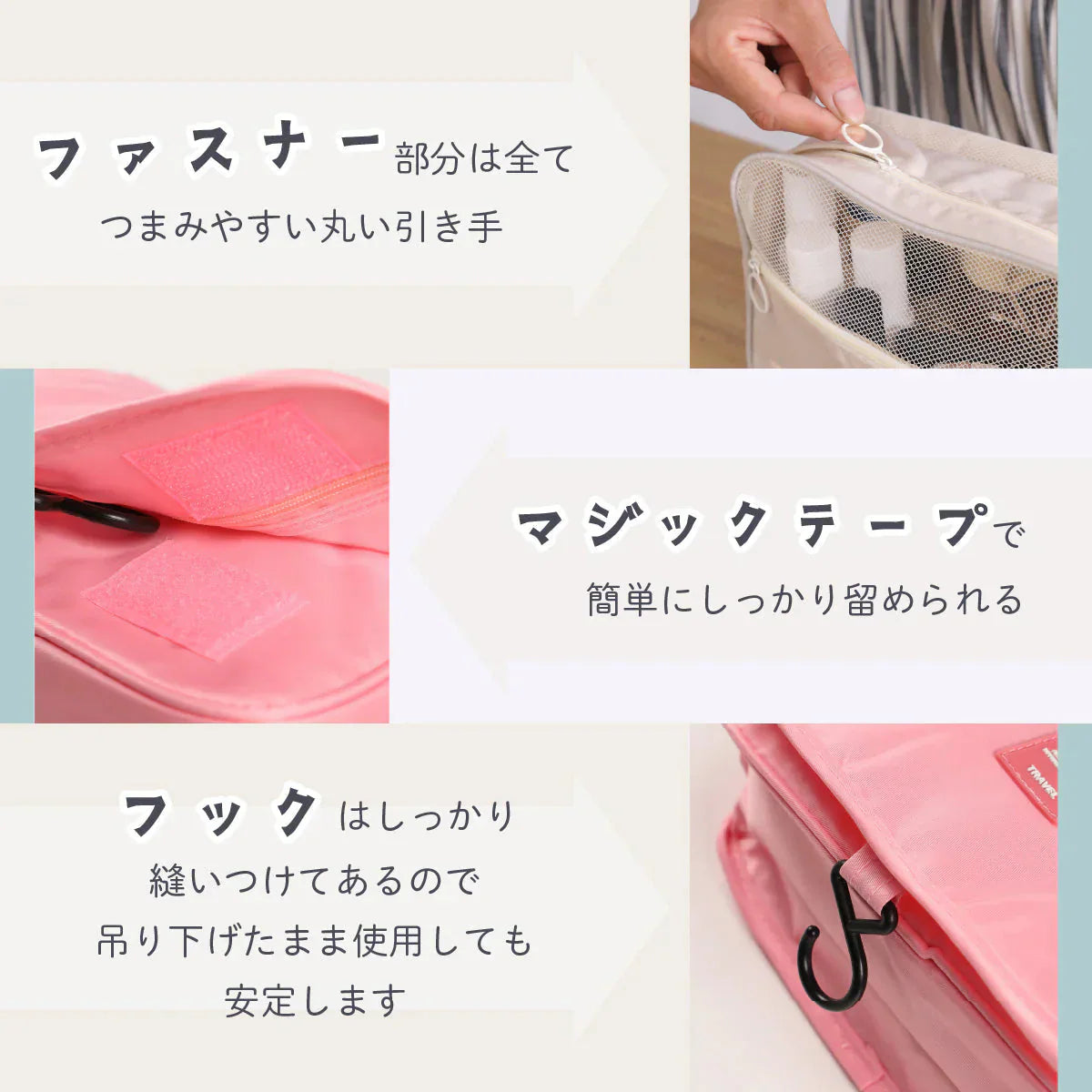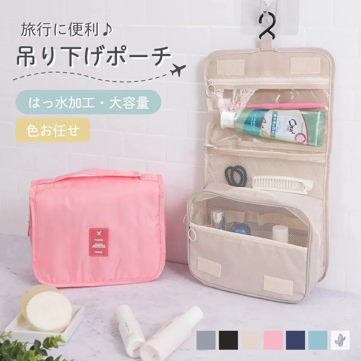 【トラベルポーチ /色お任せ】吊り下げポーチ 撥水加工 大容量 化粧ポーチ コスメポーチ メイクポーチ 旅行 ポーチ 旅行収納ケーストラベルグッズ パッキング 便利グッズ 洗面用具 化粧品洗面用具収納旅行便利グッズ