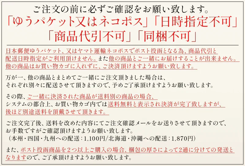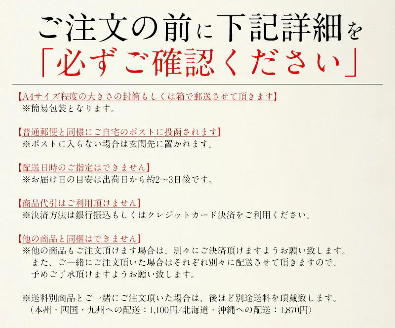 ・商品代引はご利用頂けません。(銀行振込、クレジットカード決済をご利用ください)