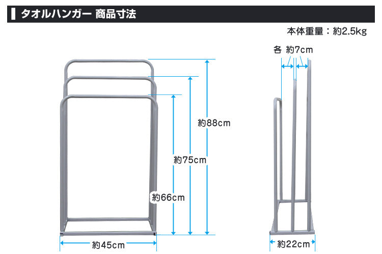 タオルハンガー バスタオルハンガー タオルスタンド おしゃれ バスタオル ハンガー 物干し 横から スリム バスタオル掛け タオル 部屋干し タオル干し スタンド タオル掛け 洗面所 収納 脱衣所 幅45cm 一人暮らし 新生活