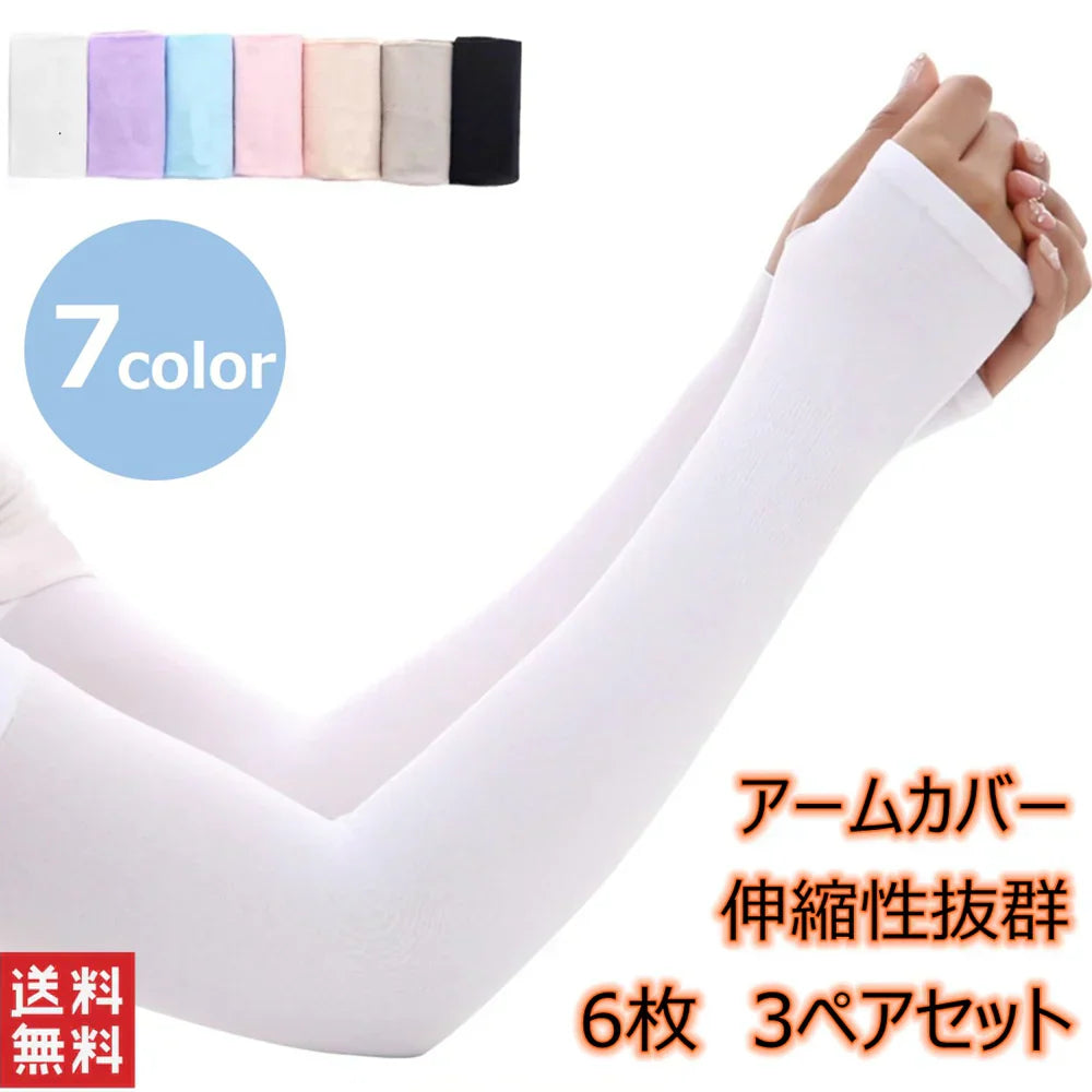 【グレー、6枚、3ペア、送料無料】アームカバー UVカット99% 3ペアセット 吸汗速乾 袖カバー アームウォーマー アーム カバー フィット感 伸縮性 通気性