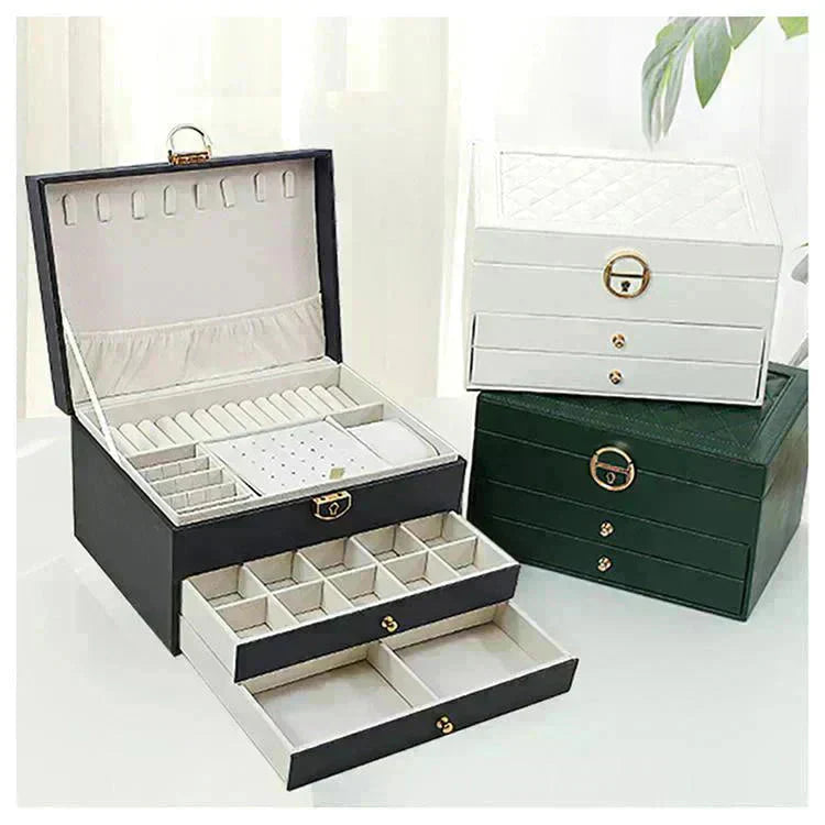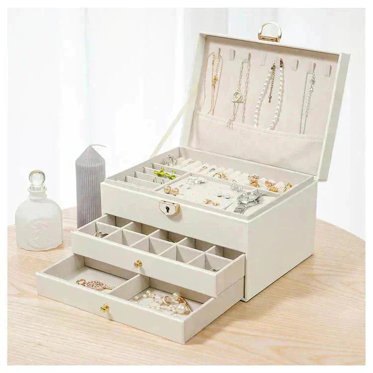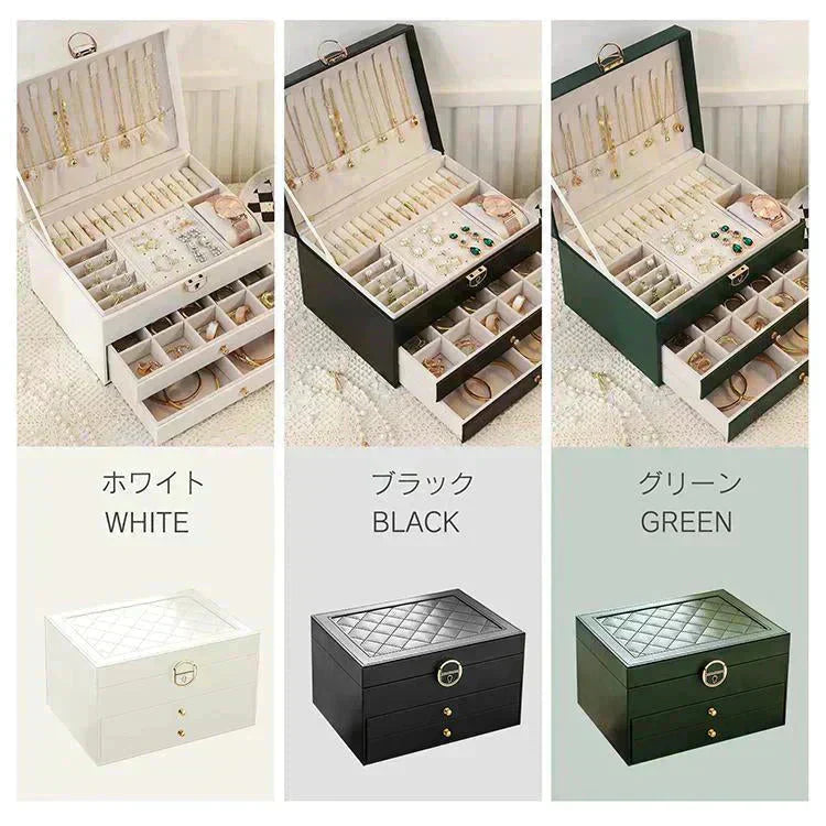 【予約につき11月下旬以内発送予定】アクセサリーケース 「ホワイト」 ジュエリーボックス 3段 鍵付き おしゃれ 大容量 アクセサリー収納 アクセサリーボックス 時計 指輪 ピアス ネックレス プレゼント