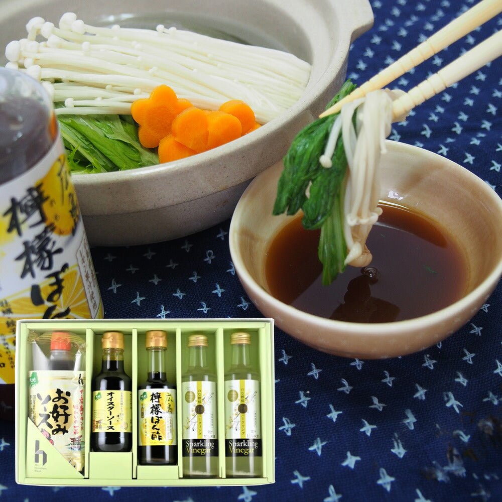 ■規格:広島ぢゃけんお好みソース500g、オイスターソース250g、広島檸檬ぽん酢180ml×各1、のむ檸檬酢パークリング200ml×2