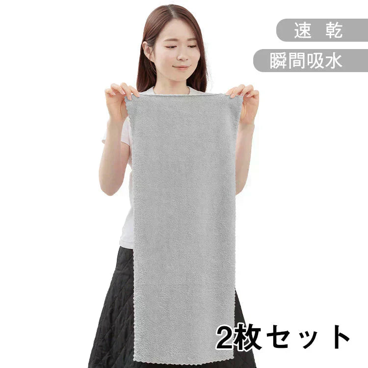【グレー】80cm×33cmヘアタオル 2枚組 フェイスタオル ヘアドライタオル 速乾タオル 吸水タオル 吸水速乾【カウシェファーム収穫対象商品】