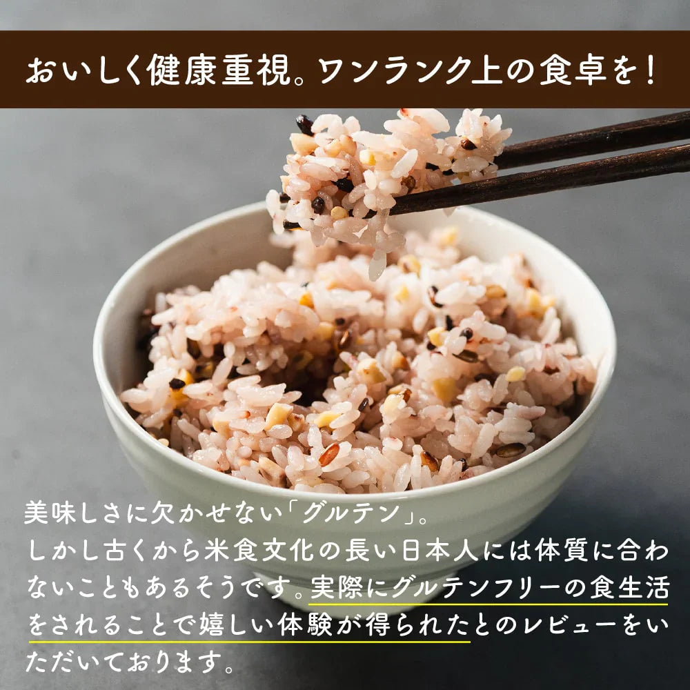 小麦アレルギーの方や、グルテンフリー生活をしている方も安心して食べられるように麦類の穀物を全て除いた雑穀米が完成。
