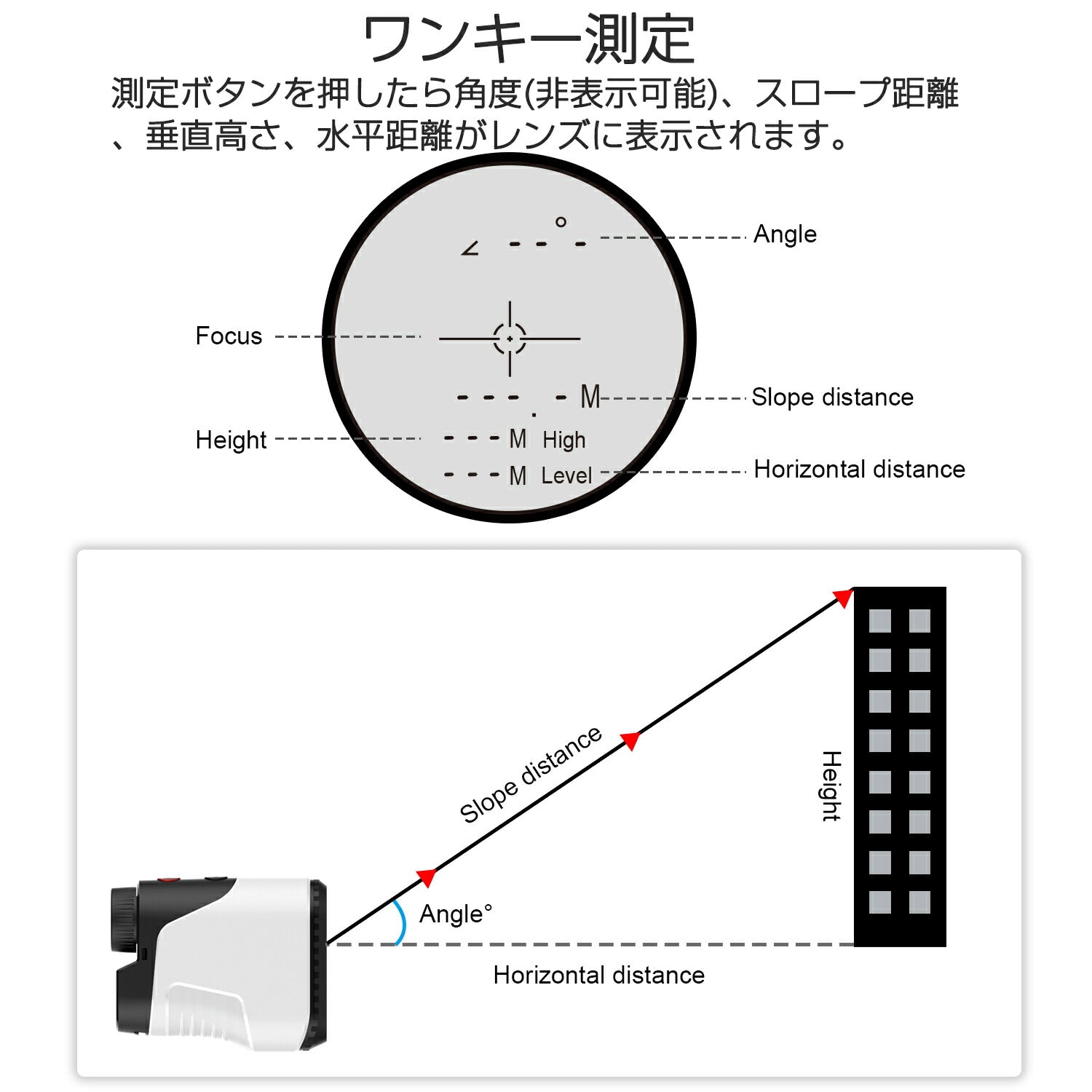 レーザー距離計 ゴルフ 直線距離 高低差 水平距離 高低差 角度 高さ 測定器 6倍拡大 フォーカス 望遠 高透過率 アウトドア 野鳥観察 遠足 登山 プレゼント