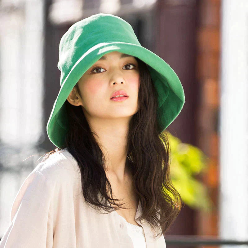 【フリー56-58.5cm-グリーン】【商品名:綿ポリブリムUVハット】