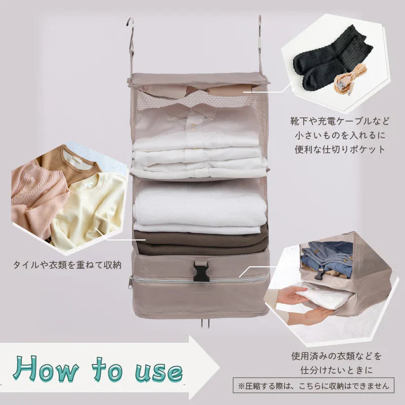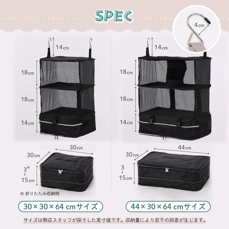 【ブラック 44x30x64cm】トラベルポーチ 吊り下げ 圧縮 小さめ 旅行ポーチ おしゃれ かわいい 収納ポーチ 大容量 ワードローブ収納 軽量 出張 圧縮バッグ 着替え 衣類ラック 大きい トラベルバッグ インナーバッグ 整理 圧縮袋 仕分け