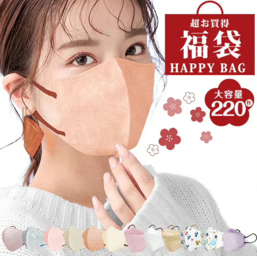 3D立体マスクMサイズ220枚 カラーマスク バイカラーマスク 不織布マスク 福袋