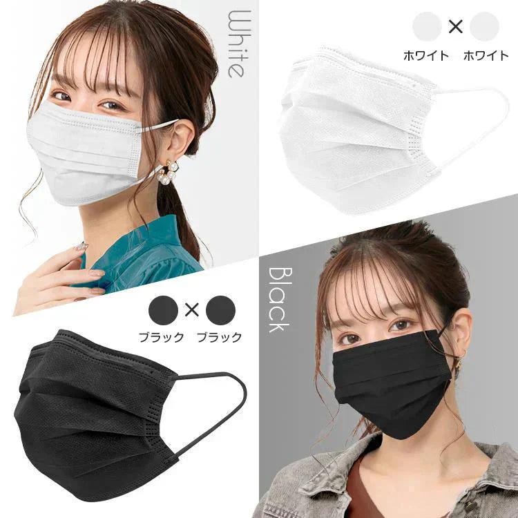 マスク 50枚 「Mサイズ・ホワイト」 血色マスク 使い捨て 不織布 カラーマスク バイカラー 立体構造 男女兼用 花粉症対策 ファッション 耳が痛くない 小顔