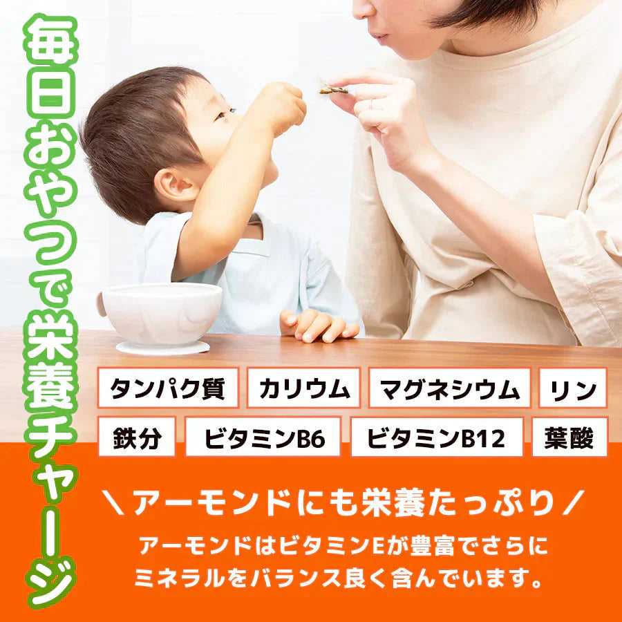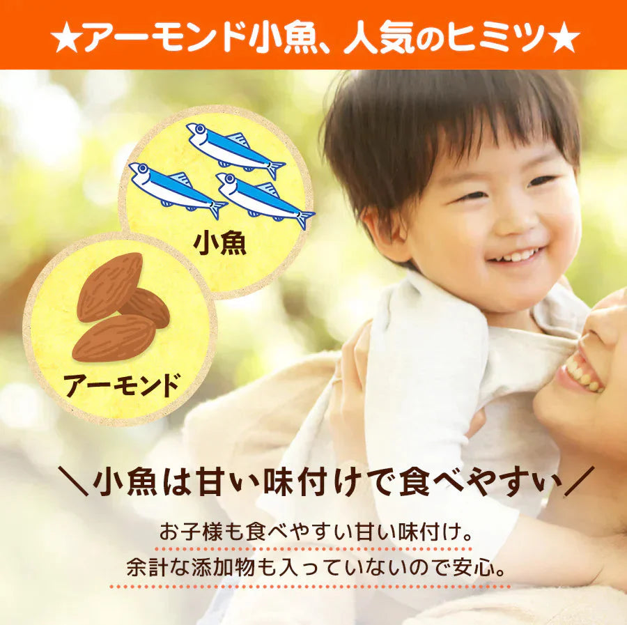 ■原材料名:アーモンド(アメリカ産)、カタクチイワシ煮干(カタクチイワシ(瀬戸内海産)、食塩)、砂糖、いりごま、還元水飴、食塩
