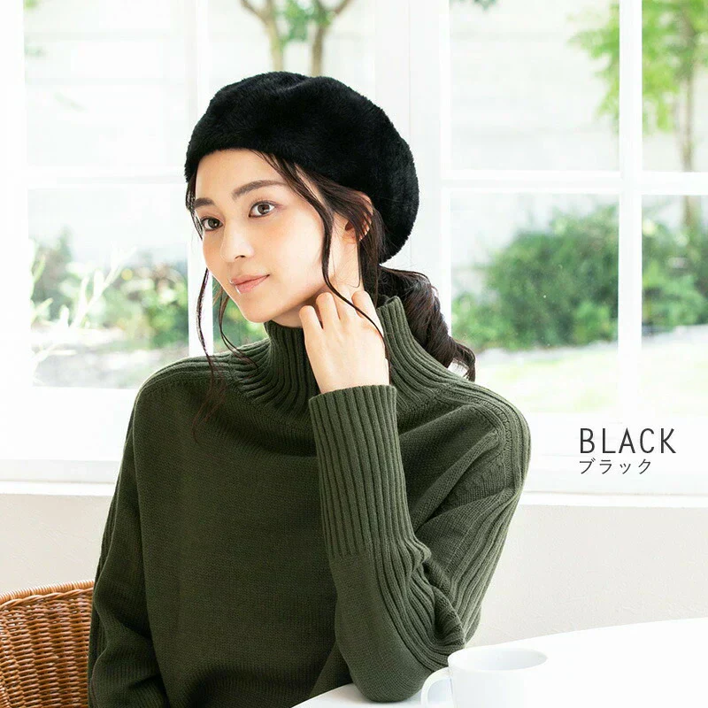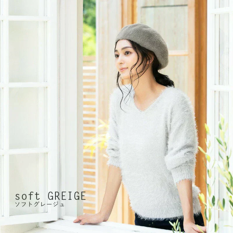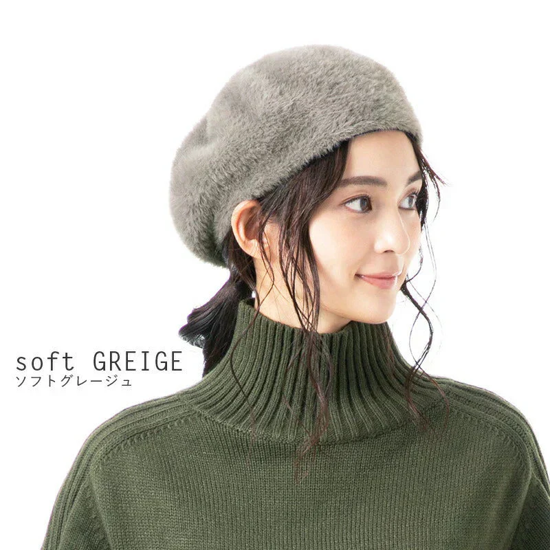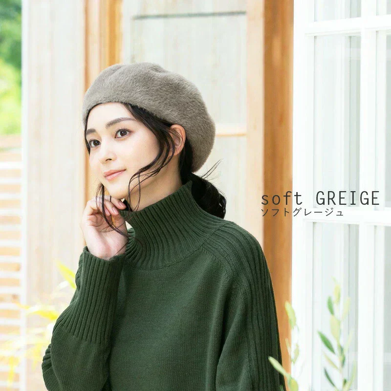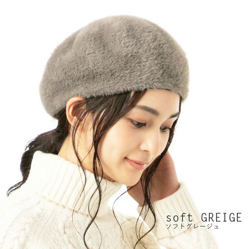 【フリーサイズ-ソフトグレージュ】【商品名:シャギーベレー】