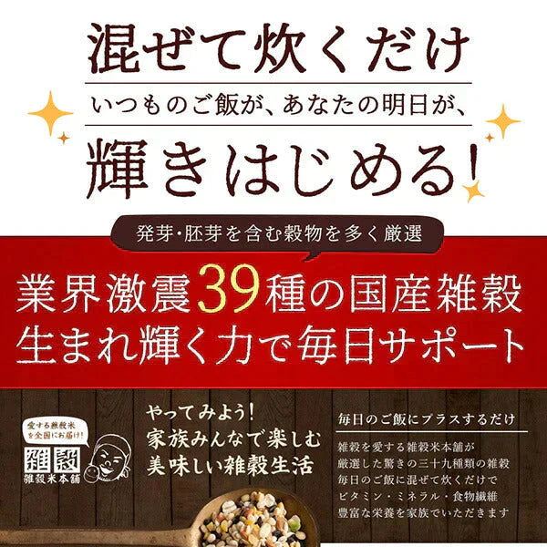 毎日のご飯に混ぜて炊くだけ!いつものご飯が、あなたの明日が、輝き始める!業界激震39種の国産雑穀で毎日をサポート♪