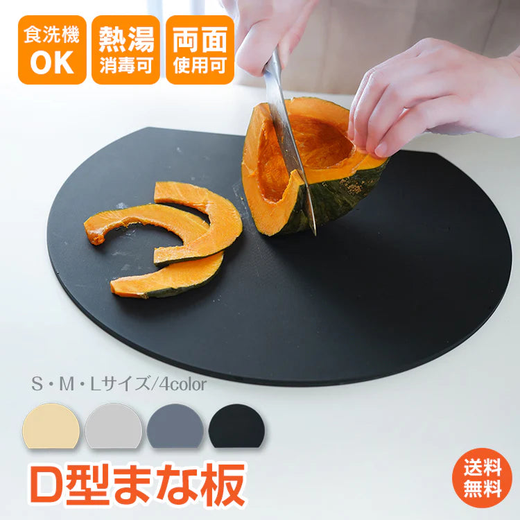 丸いまな板 「ダークグレー」 食洗機対応 D型まな板 耐熱エラストマー 薄型 多機能 抗菌 丸型 大きい まないた D型 丸 半円 カッティングボード 黒 グレー おしゃれ
