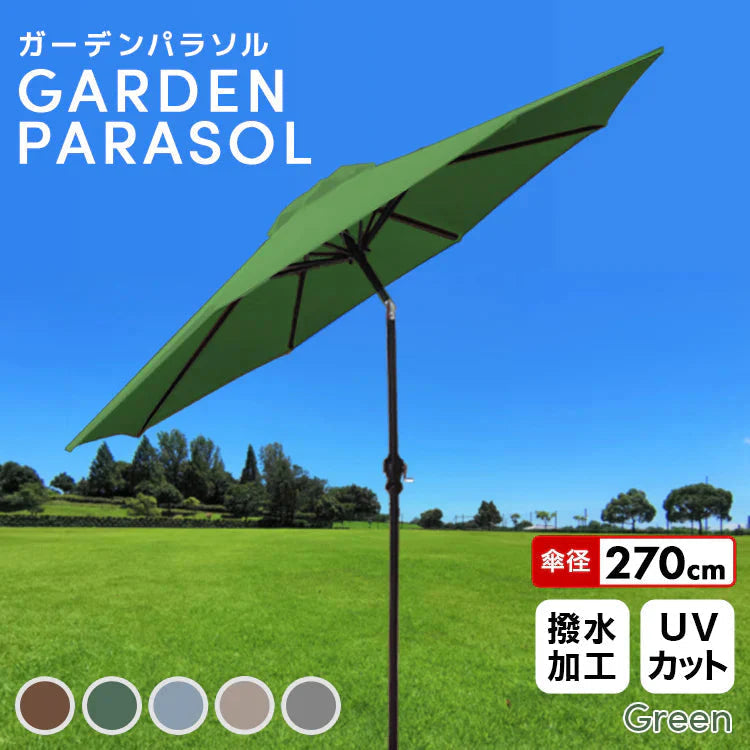 【グリーン】ガーデンパラソル 270cm 傾く パラソル アルミ 傾くパラソル UVカット チルト機能 ビーチパラソル 傘 ガーデン ガーデニング カーデンファニチャー 庭 テラス ビーチ キャンプ 日傘 折りたたみ 日よけ