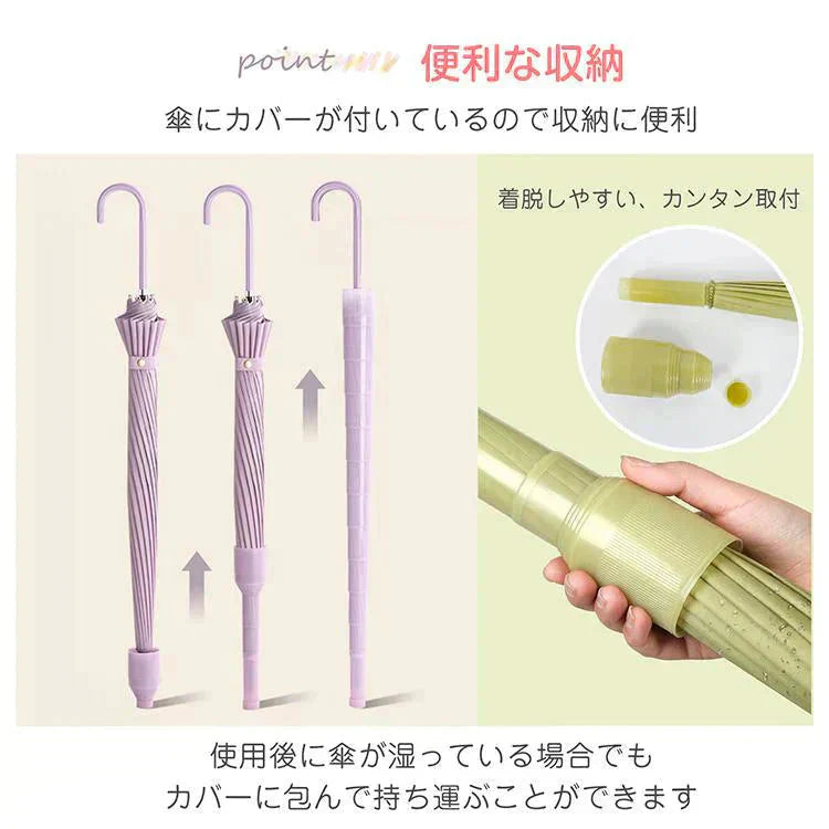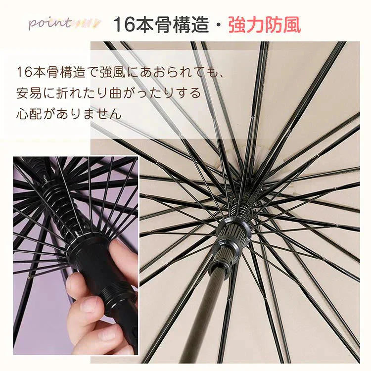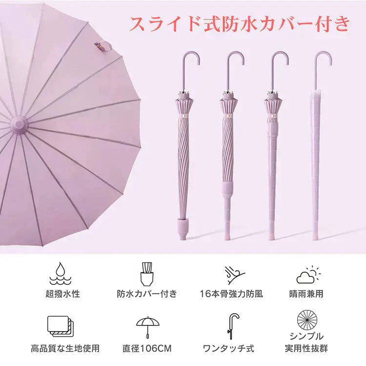 スライドケース長傘 「ブラック」 晴雨両用 16本骨 撥水カバー付き 耐強風 撥水 梅雨対策 メンズ レディース おしゃれ ジャンプ 便利 機能 車 電車 プレゼント
