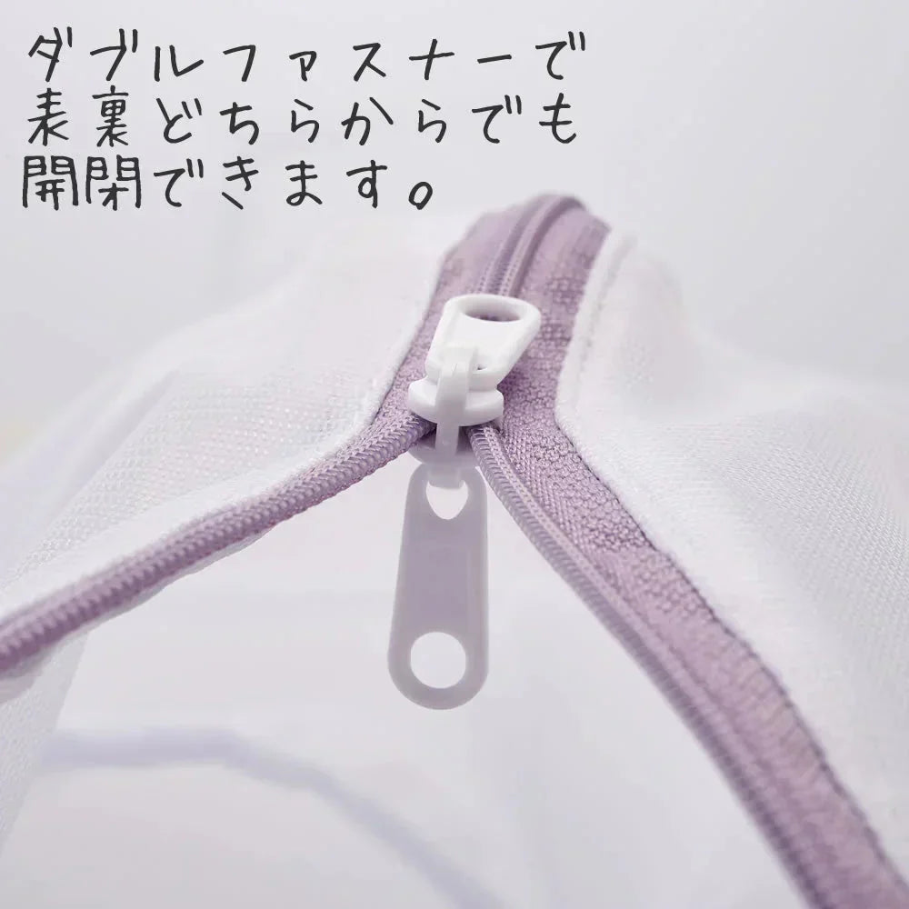 表も裏も使える洗濯ネット丸型3枚組◆ 細かなメッシュ 表裏両面使える ランドリーネット 丸型 下着 キャミソール ストッキング くずよけ 両面使用可能 時短 使いやすい カーキ ブラウン パープル 紫 表裏なし ダブルファスナー リバーシブル