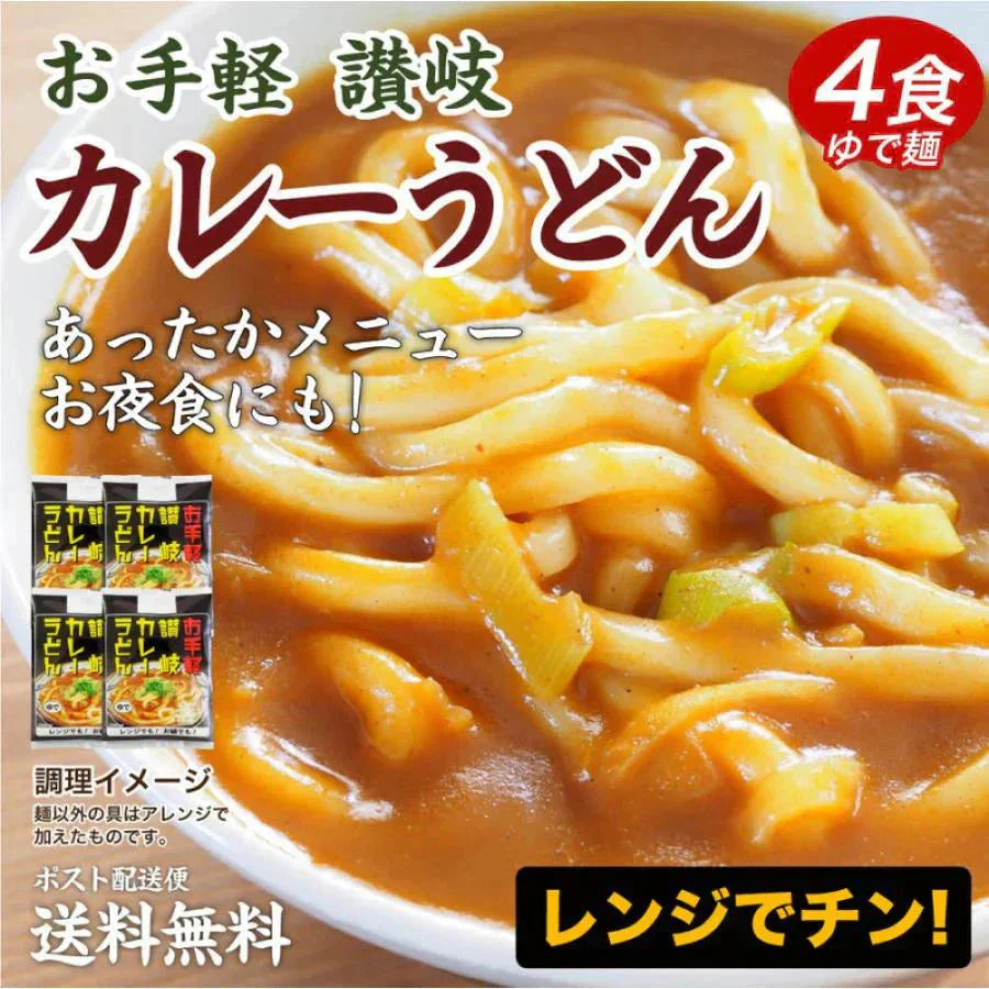 送料無料 讃岐のカレーうどん4食 カレーソース付き ゆでうどん 長期保存 食品 讃岐うどん お試し 取り寄せ ご当地グルメ