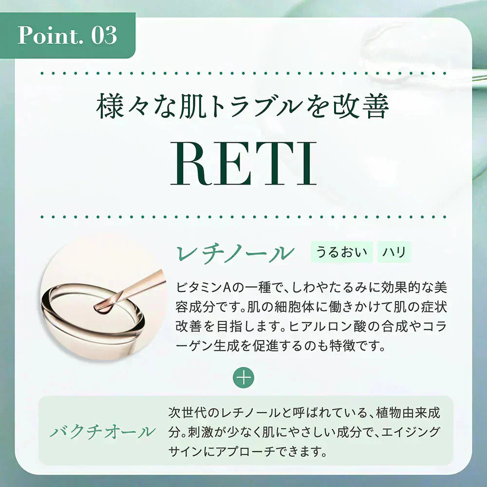レチノールがアクティブに角質をケア、CICAが優しくお肌に潤いを