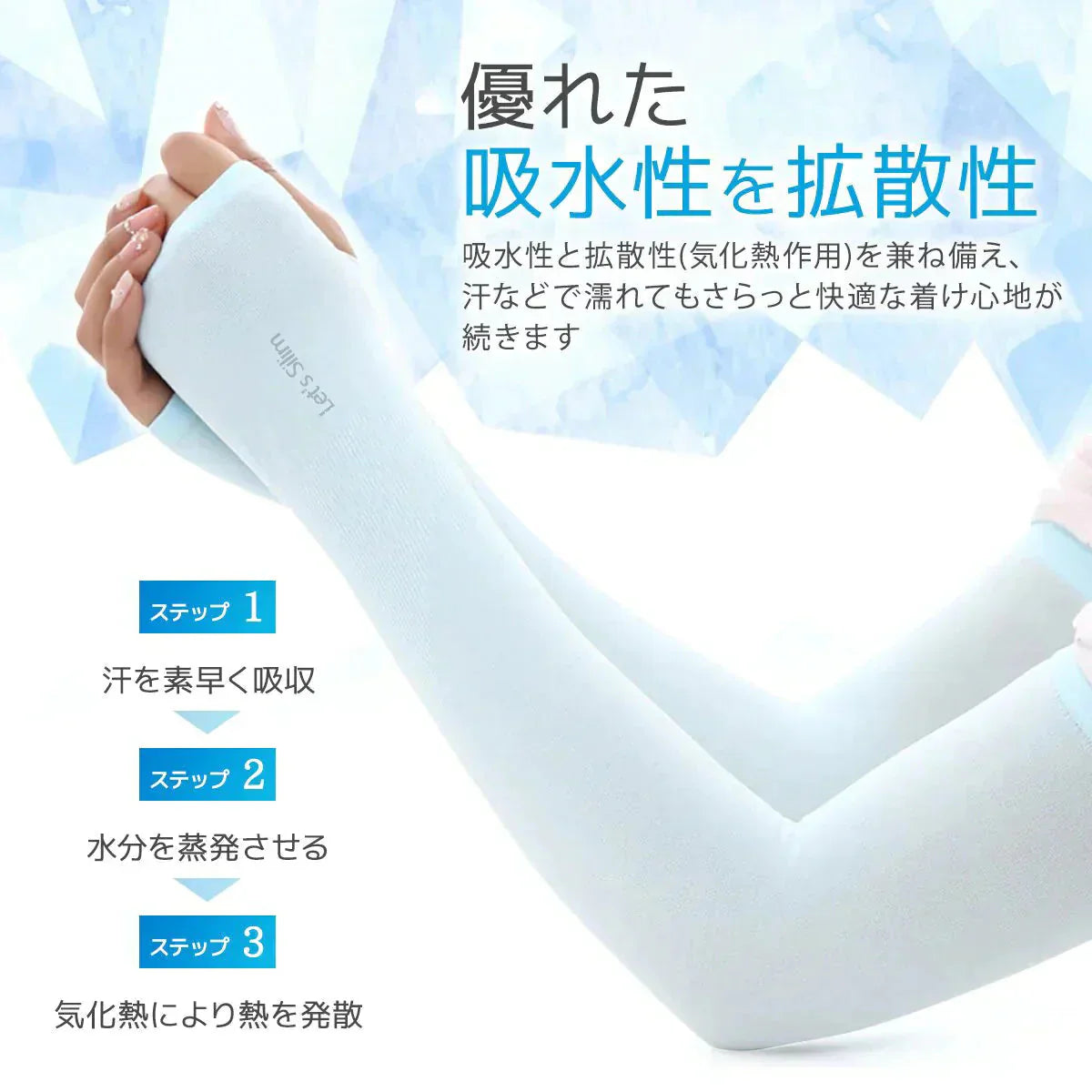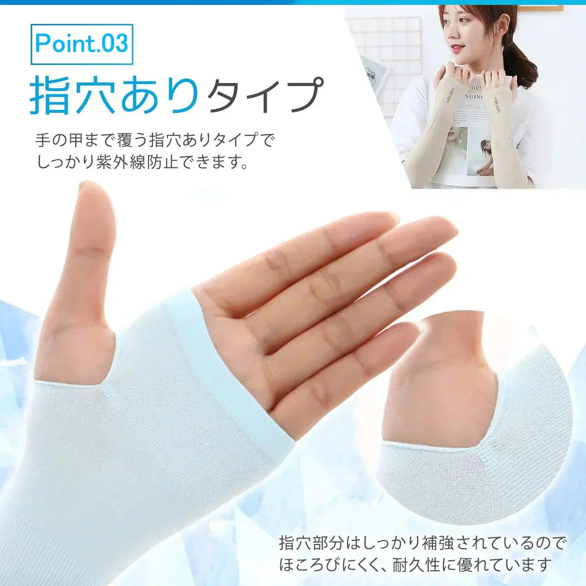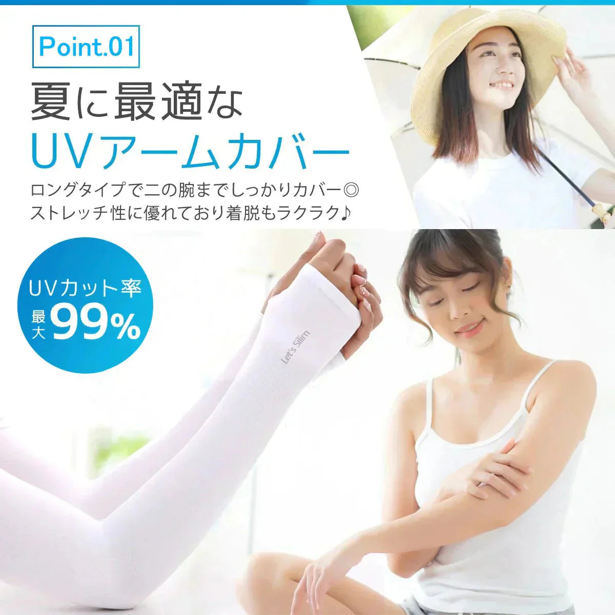 【Point.1 夏に最適なUVアームカバー】ロングタイプで二の腕までしっかりカバーストレッチ性に優れており着脱もラクラク♪最大UVカット率99%で強い日差しからお肌をしっかりと守ります