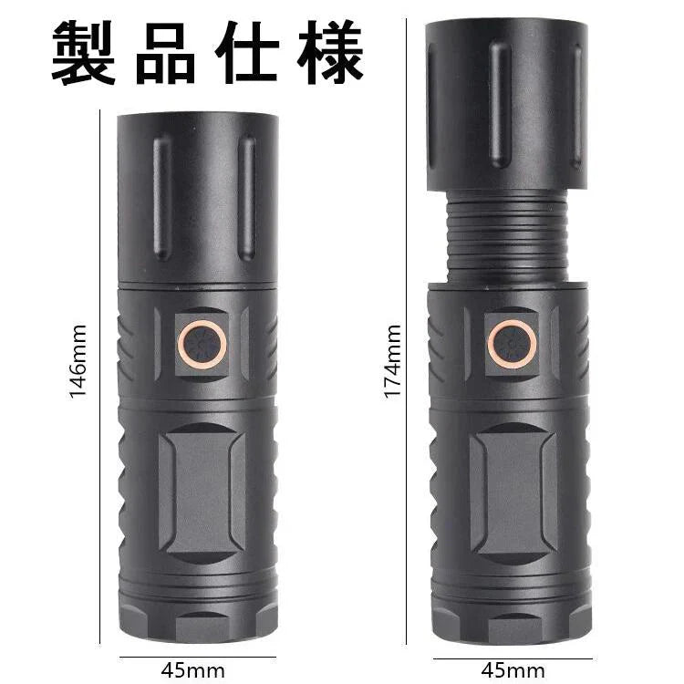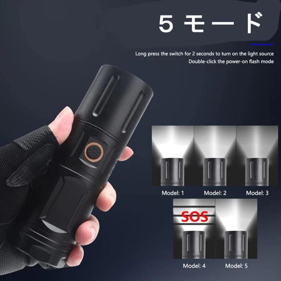懐中電灯 LED 充電式 強力 LEDライト ハンディライト ズーム機能 フラッシュライト 充電式 強力 多モード 小型 軍用 作業灯 停電 爆光 防災グッズ防水