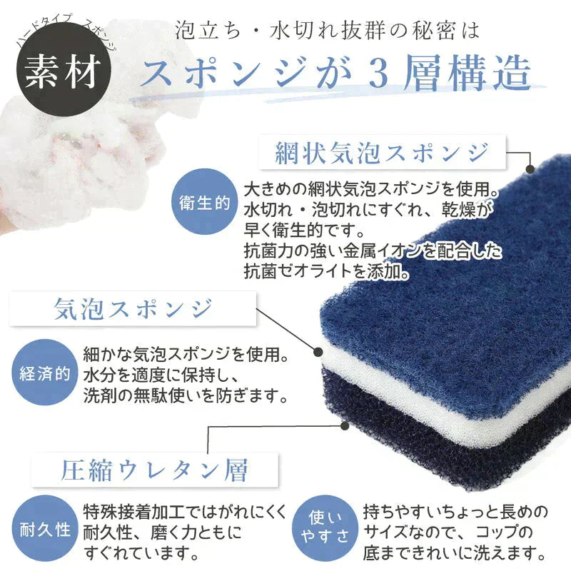 中央のウレタンが洗剤をキ-プし、少ない洗剤でもしっかり泡立ちます。