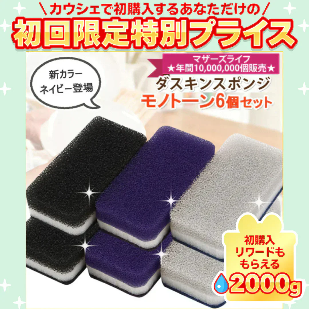 送料無料 ダスキン 台所用スポンジ モノトーン6個セット(3色×2セット) 【ご新規さん限定商品】