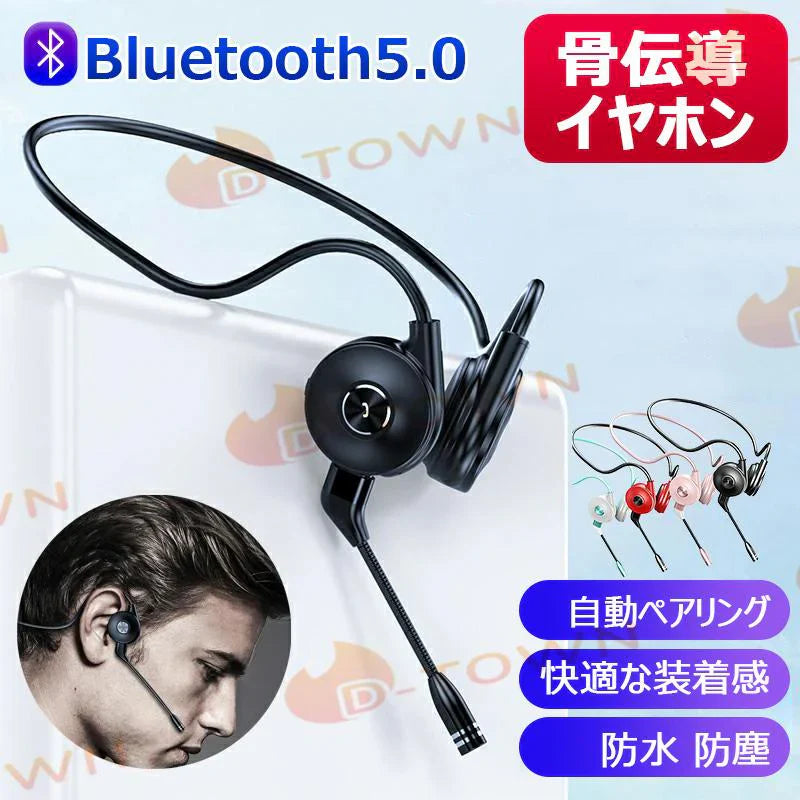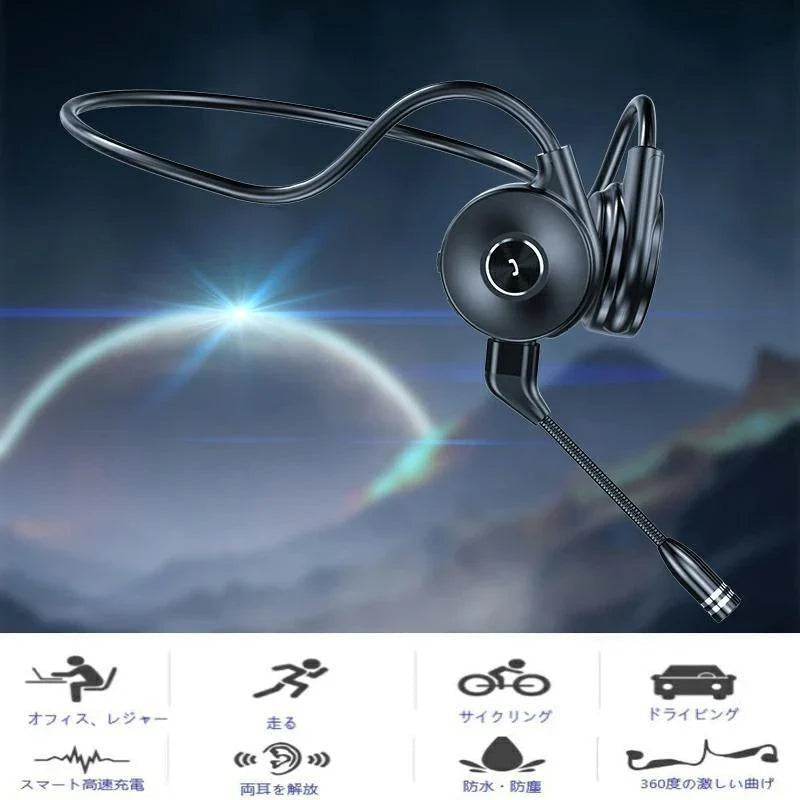 骨伝導イヤホン ワイヤレス ヘッドホン テレワーク 在宅ワークに最適 最強ノイズ キャンセリング マイク 運転中の通話でもきちんと相手に届きます w254C(ブラック)