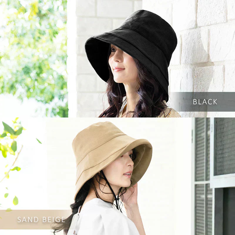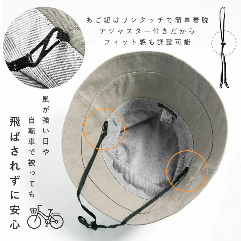 【XLサイズ58.5-61cm-ブラック】【商品名:紐付き麻ポリブリムハット】