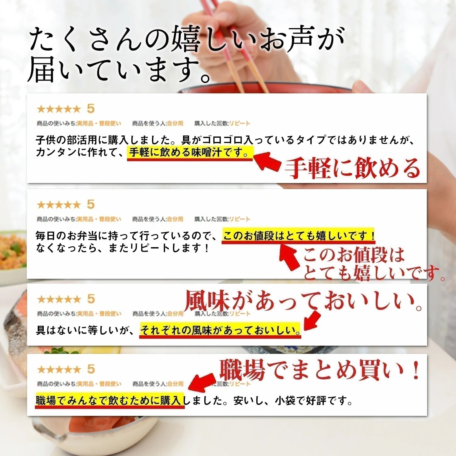当店で人気のアミュード小袋インスタント味噌汁セットが遂に60万食突破!感謝の気持ちを込めて、お買い得なスープ福袋をご用意いたしました。