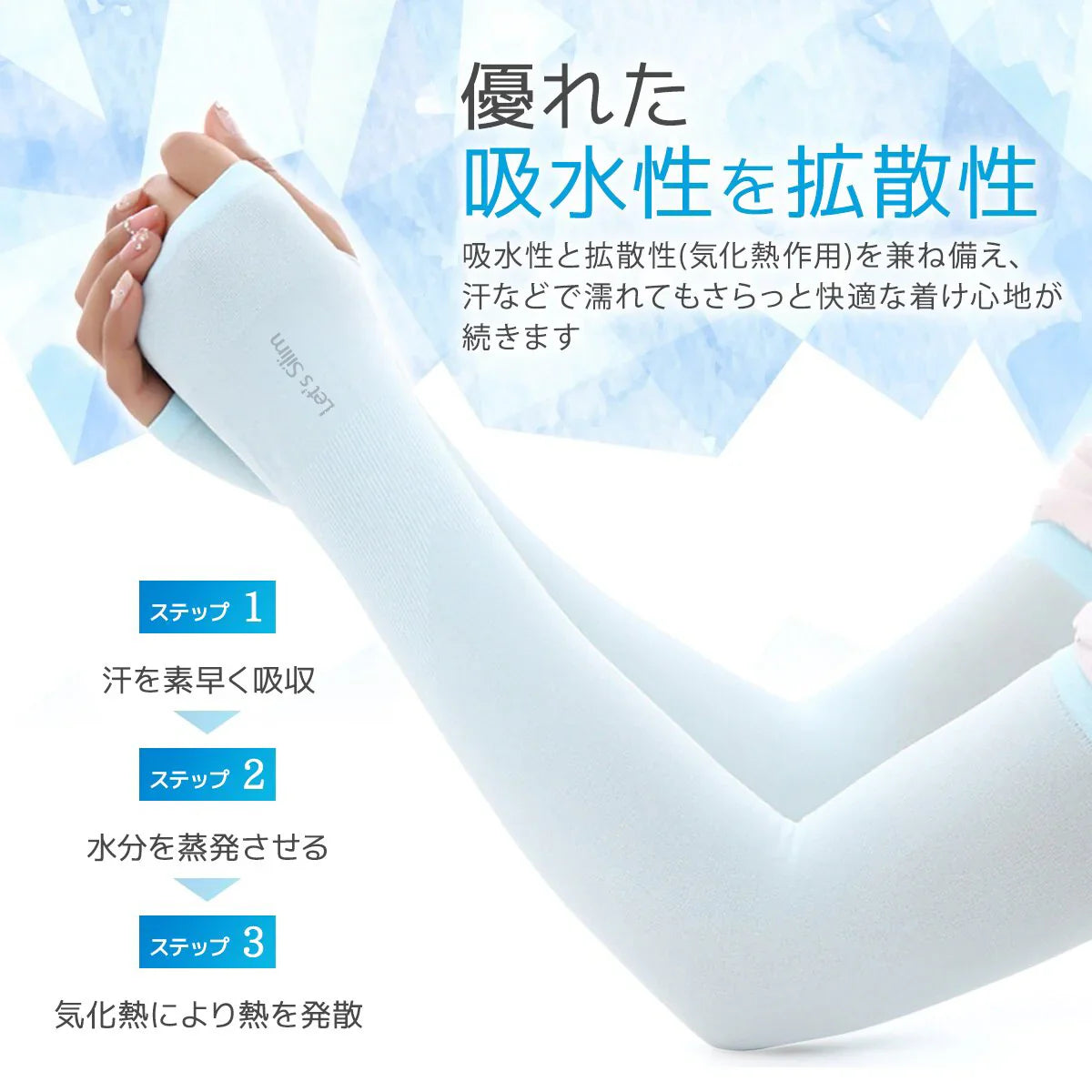 【Point.1 夏に最適なUVアームカバー】ロングタイプで二の腕までしっかりカバーストレッチ性に優れており着脱もラクラク♪最大UVカット率99%で強い日差しからお肌をしっかりと守ります