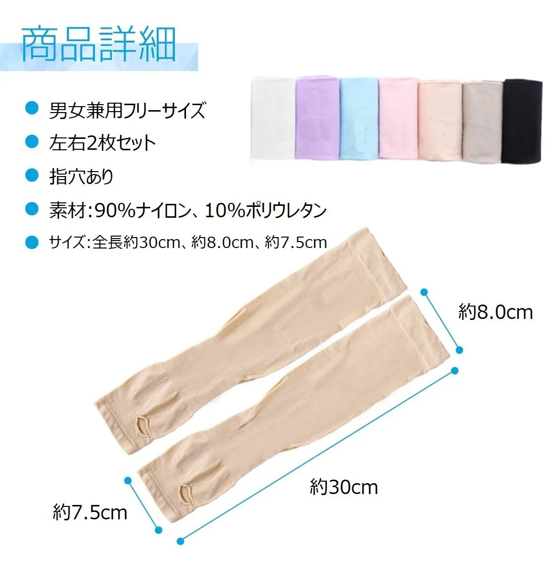 【商品詳細】男女兼用フリーサイズ左右2枚セット指穴あり素材:90%ナイロン 10%ポリウレタンサイズ:全長約34cm、約8cm、約7.5cm